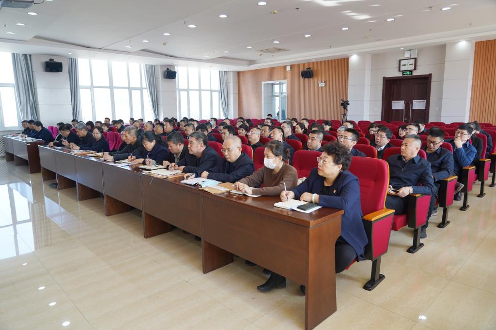 学校党委副书记张德才主持会议,校领导刘星、朱晓冬、黄海涛、俞春利出席会议,校党政领导班子成员、处级干部、民主党派负责人、教职工代表参加会议。