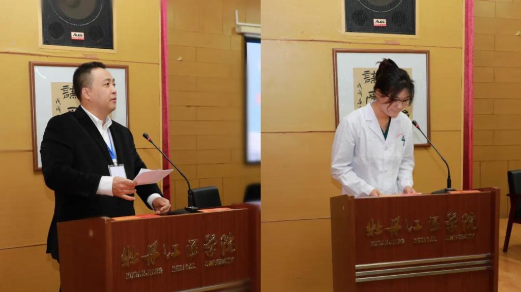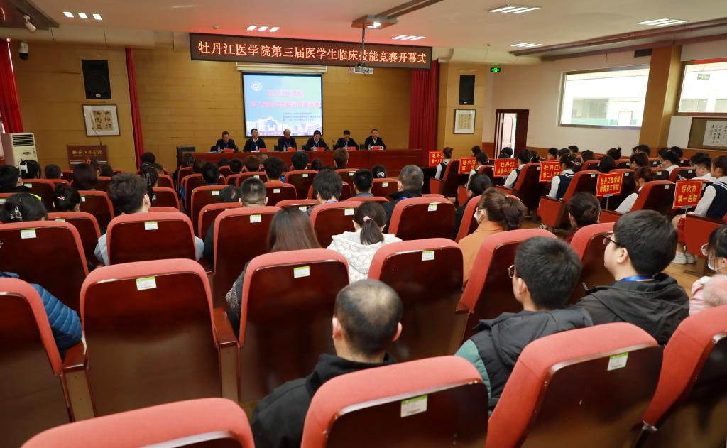牡丹江医学院党委常委、副校长刘星,学生处处长王俊林、校团委书记王新,第一临床医学院副院长杜尔滨,裁判长宋先东、竞赛组委会成员、全体裁判员,各医院领队、参赛选手、观摩人员等180余人参加了开幕式。开幕式由教务处处长宋高臣主持。