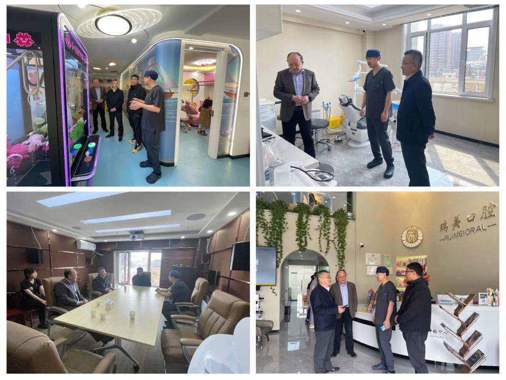 姚胜强对门诊规模、基础设备、医师资质进行介绍,并表示欢迎口腔医学专业毕业生前来实习和就业。随后张德才介绍了学校的培养目标、办学特色,他强调本次访企拓岗目的在于深入了解用人单位对毕业生的需求,广泛采纳用人单位意见,为人才培养提供方向。石屹表示希望与瑞美口腔门诊有限公司建立联系,让学生多层面接触临床增加实习经验,同时拓展毕业生就业渠道。关跃对毕业生基本情况及就业意向进行说明,就实习合作、招聘待遇等事宜进行交流。最后,一行人参观了瑞美口腔门诊有限公司的诊室环境及诊疗设备。