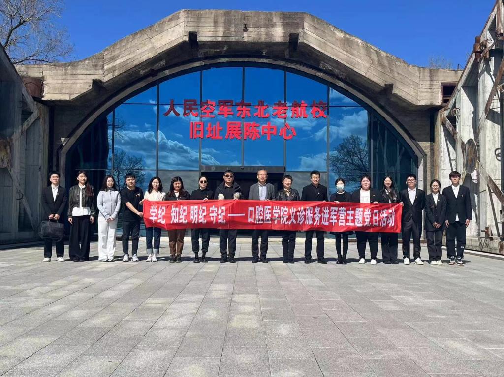 口腔医学院师生首先在讲解员的带领下参观了位于牡丹江市西安区海浪机场的人民空军东北老航校旧址,讲解员详细介绍了东北老航校发展历程,深入阐述了“团结奋斗 艰苦创业 勇于创新 开拓新路”的东北老航校精神,在场师生在参观学习中感受到了红色血脉的厚重,接受了精神洗礼,汲取到奋进力量。随后,学院师生参观了空军营地,现场学习了部队“铁一般信仰、铁一般信念、铁一般纪律、铁一般担当”的建设内涵。最后,口腔医学院教工党支部书记林娜在会议室为部队官兵做了口腔健康知识宣讲,临床医师王海艳对部队官兵进行了口腔检查,针对不同情况提供了针对性诊疗建议。