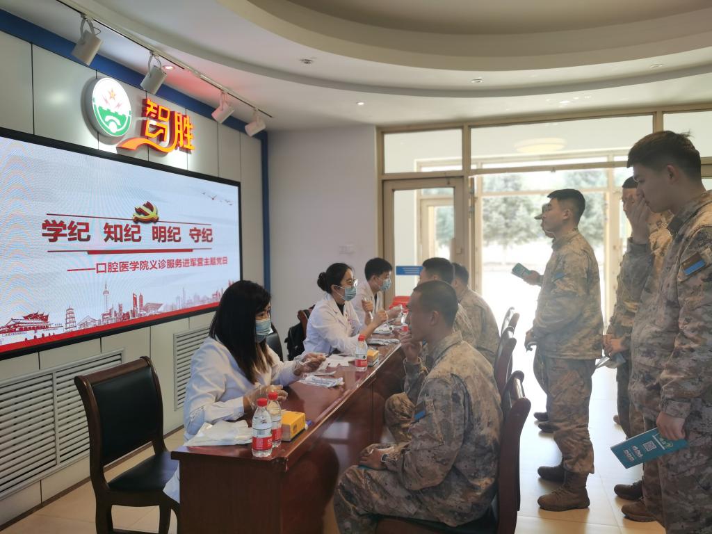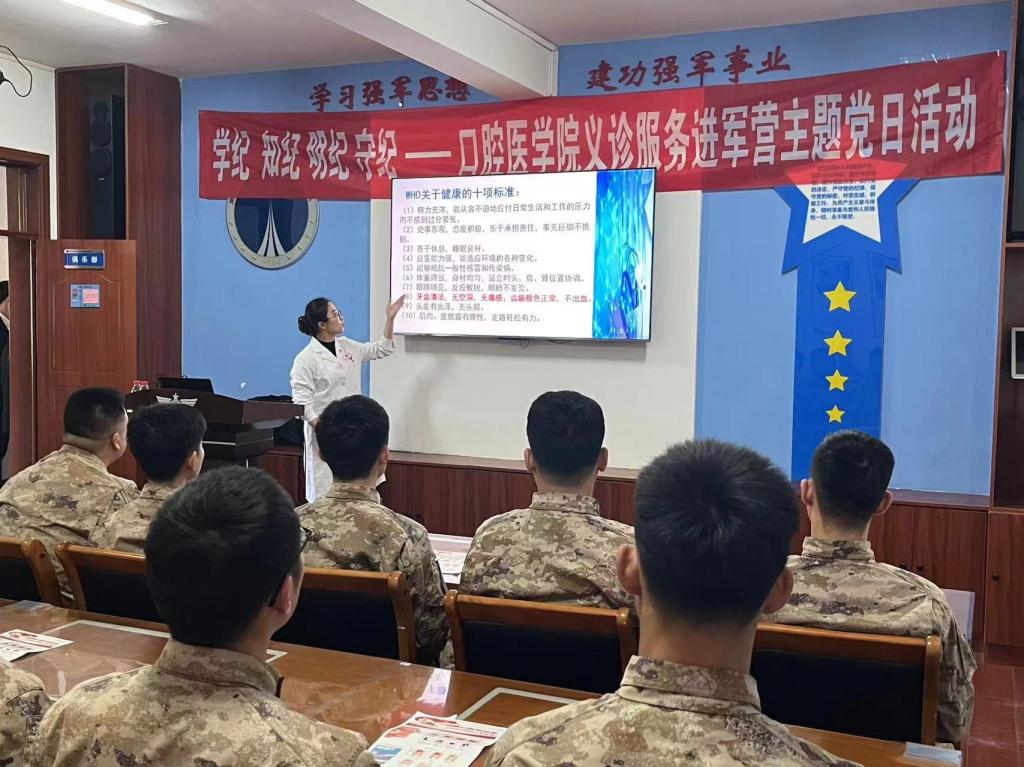 2024年4月17日,我校口腔医学院来到中国人民解放军空军某部进行参观学习,同时为部队官兵送去口腔健康知识讲座和义诊服务。学校党委常委、宣传统战部部长俞春利,口腔医学院党总支书记钱锐、副书记关跃、副院长袁辉、教师党员代表及学生党员代表参加本次活动。