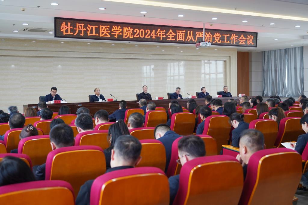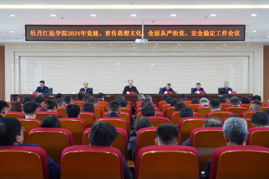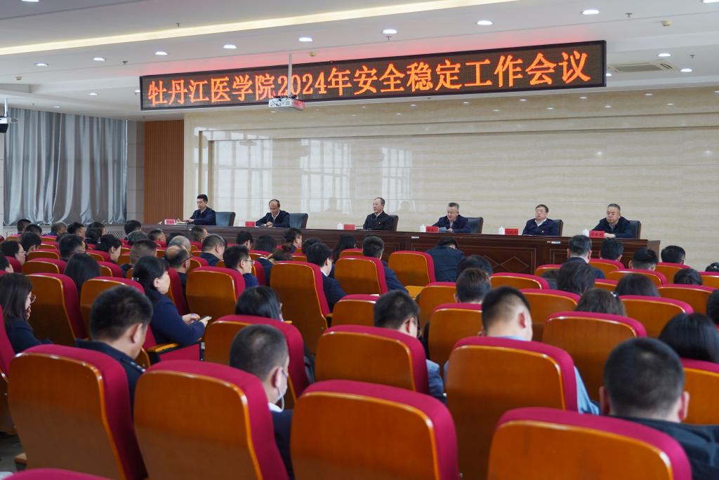 为进一步统一思想、提高认识,明确责任和工作任务,为建设高水平特色应用型医科大学提供有力保障,2024年4月29日,学校在临床技能实训中心17楼大会议室召开2024年党建、宣传思想文化、全面从严治党、安全稳定工作会议,总结2023年四项工作开展情况,安排部署2024年相关工作任务。学校领导班子成员出席会议,副处级以上干部,全体辅导员及组织部、宣传统战部、纪委办公室、保卫处全体人员参加会议。会议由副校长刘星主持。