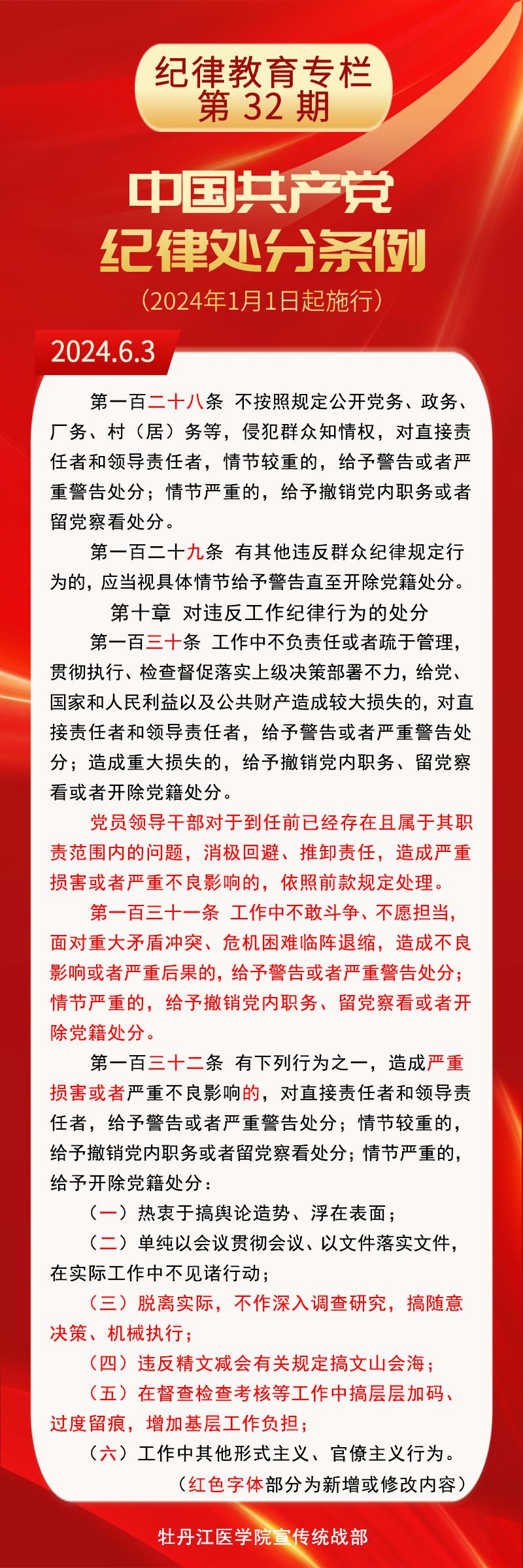 【纪律教育专栏】《中国共产党纪律处分条例》修订条文对照学习(第32期)