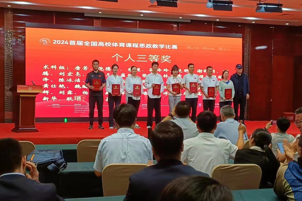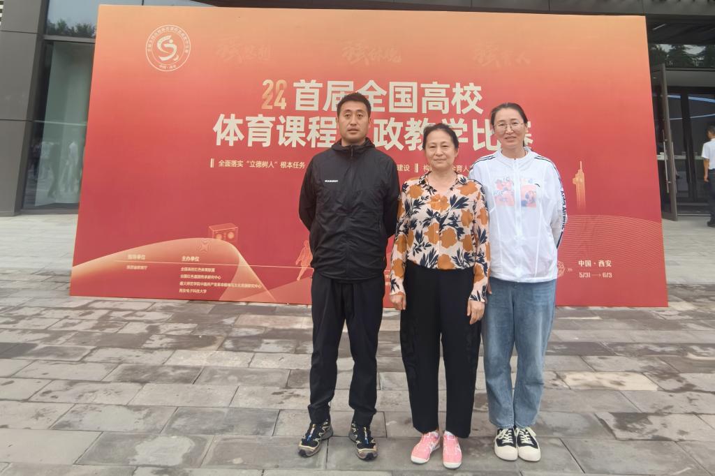 2024首届全国高校体育课程思政教学比赛在西安电子科技大学落下帷幕,本次大赛共有全国76所高校参加,参赛总人数201人,采取差额方式评选。在张宇副主任的精心指导下,体育教研部派两名教师参加比赛,吴佐旭主任带领崔健、胡秉娇两位老师分别参加术科组与理论组竞赛。经过2天的激烈角逐,崔健老师荣获术科组个人三等奖,胡秉娇老师荣获理论组优秀奖。