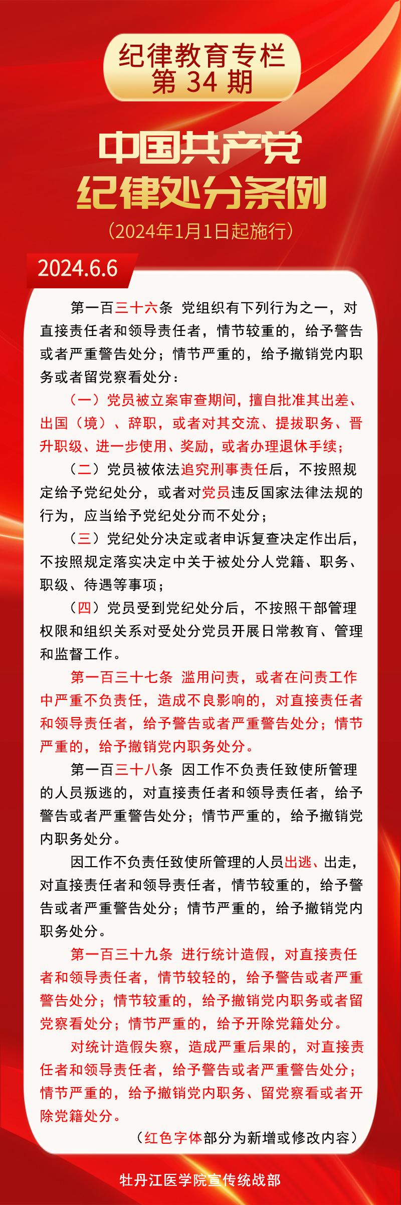 【纪律教育专栏】《中国共产党纪律处分条例》修订条文对照学习(第34期)