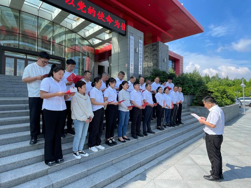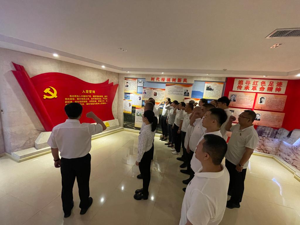 党总支宣传委员、副处长林利带领后勤全体党员面对党旗,重温入党誓词,铭记共产党员的初心使命。