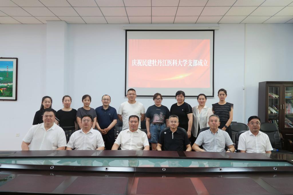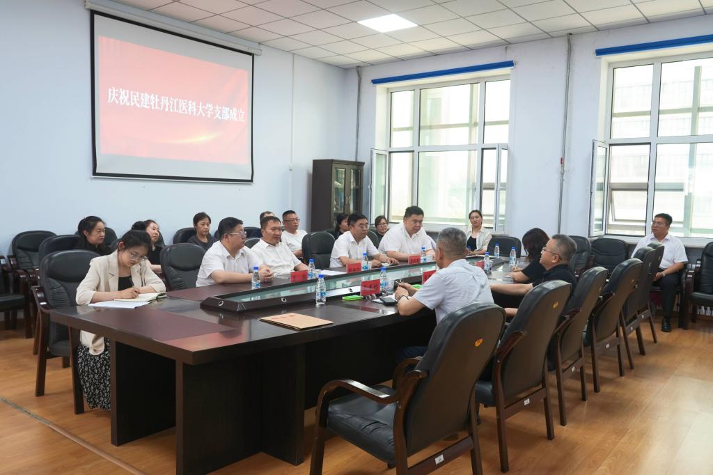 都业宁代表民建市委感谢学校党委对民建组织建立和民建成员成长的关心,向正式更名成为牡丹江医科大学表示热烈的祝贺,也对民建牡丹江医科大学支部成立表示祝贺。民建牡丹江医科大学支部是牡丹江民建组建的第一个高校支部,是牡丹江民建政治生活中的一件大事,意义非凡,特别是对民建基层组织建设发展具有重要意义。他对民建牡丹江医科大学支部今后的工作提出三点希望:一是加强理论学习,增强政治定力。要坚定不移用习近平新时代中国特色社会主义思想武装头脑、指导实践,加强对党史、会史的优良传统的学习。二是发挥特色优势,提高履职能力。要充分发挥高校支部的人才优势和自身在医药等领域的优势,举好牡丹江医科大学支部这一面大旗。三是完善工作机制,加强自身建设。要着力研究新形势下做好高校基层组织建设的新思路新举措,增强工作针对性、有效性,努力建设政治过硬、特色鲜明的民建基层组织。