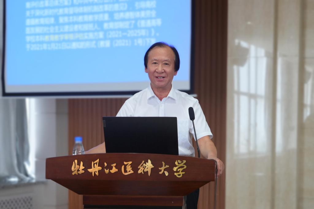 为推动学校本科教育教学审核评估工作进程,扎实推进我校审核评估迎评促建工作,更好提升全校各部门对评估工作的认识,进一步统一思想、凝聚共识,7月12日,学校邀请教育部普通高等学校本科教育教学工作审核评估专家、滨州医学院原副校长张培功教授,在临床技能实训中心17楼大会议室做了专题讲座。会议由学校党委副书记张德才主持,学校领导班子成员、学校各职能部门负责人、各教学部门书记、院长(主任)、教学副院长(副主任)、主管学生工作副书记(正、副处级辅导员)、专业负责人、教研室负责人、学校评估办全体人员参加培训会。