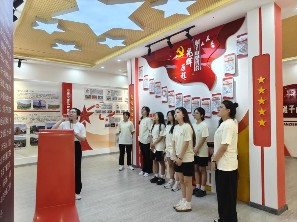 青年学子唯有深入实践,才能深切感受社会前进的脉搏,追逐新时代的梦想。为更好地了解碾子山区的红色历史,三下乡的第三站,春泥志愿服务队来到碾子山区文化宫、红色教育基地以及档案馆,并走进党建书吧,深入学习碾子山区的发展历史,开展“追溯红色记忆,延续革命精神”的社会实践活动。在讲解员的带领下,走进展厅感受小城独有的魅力。