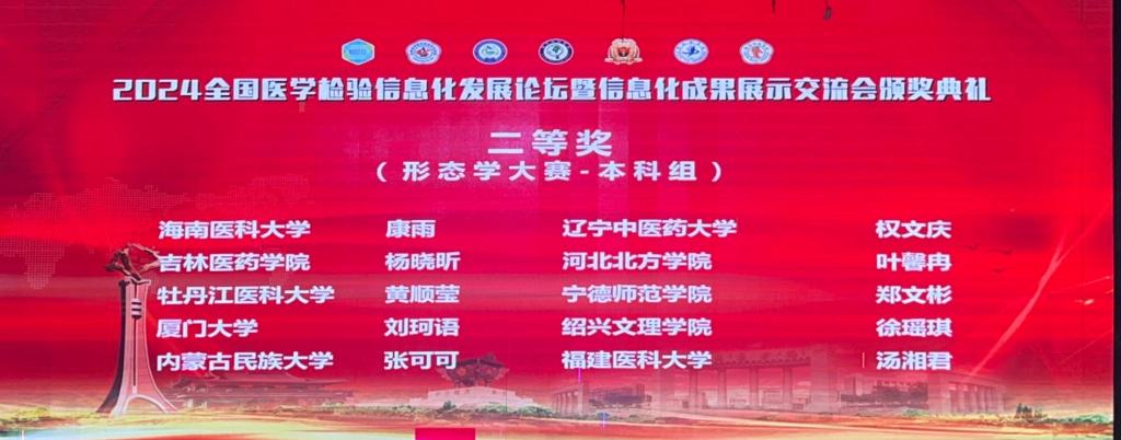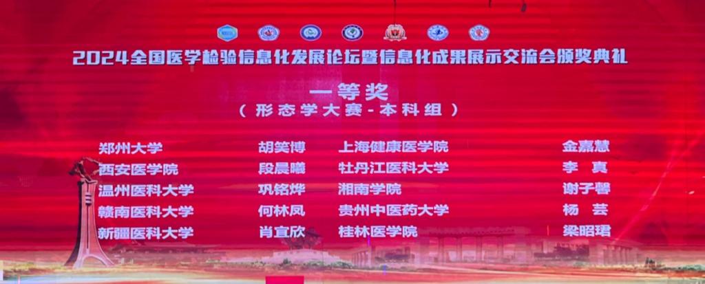 经过激烈的角逐,我校第一临床医学院2021级医学检验技术专业李真和黄顺莹同学分别荣获“第七届医学检验技术专业大学生形态学大赛”一等奖、二等奖;林雲妃和赵蕾同学分别荣获“第三届虚拟仿真临床实验诊断大赛”二等奖。