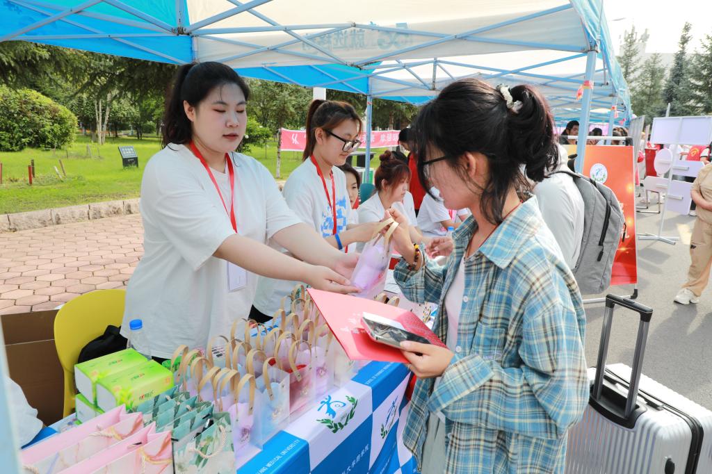 学校党委书记马宏坤在医学影像学院迎新报到处询问流程细节