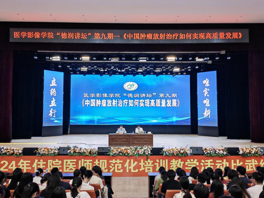 为帮助师生进一步了解肿瘤放射治疗领域前沿发展动向、拓宽学术视野、优化专业建设方向及课程设置、促进学术交流与合作、加强在校生专业启蒙和职业规划指导,2024年8月25日,医学影像学院举办第九期“德润讲坛”,邀请北京大学第三医院肿瘤放疗科主任、中华医学会放射肿瘤治疗学分会主任委员、国内放射肿瘤学界领军人物王俊杰教授莅临指导、讲座。学校党委书记马宏坤,北京大学第三医院肿瘤放疗科孙海涛、赵田地、张楠,哈尔滨医科大学附属肿瘤医院腹部放疗二科主任崔瑛教授,医学影像学院领导班子成员、全体辅导员及各年级学生近1600人参加本次活动。