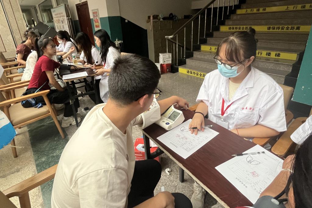 金秋时节,牡丹江医科大学迎来了更名后的首届新同学,为全面了解新生健康状况,把好学生入校的“健康关”,扎实推进平安健康校园建设,自8月25日起,学校医务处开展了为期6天的新生入学体检工作,校团委青年志愿者协会全程配合体检工作。
