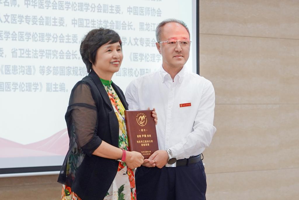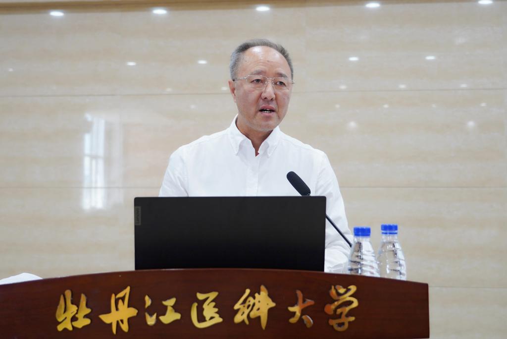 金秋九月,叠翠流金,秋风送爽,硕果盈枝。在这收获的季节,全体牡医人满怀期待地迎来了学校更名医科大学的揭牌仪式和首届发展论坛。2024年9月5日,在临床技能综合楼17楼大会议室,牡丹江医科大学发展论坛正式开讲,哈尔滨医科大学尹梅教授做了题为“有效沟通与团队建设”的学术报告。学校党委书记马宏坤,副校长朱晓冬、胡文华,宣传统战部部长俞春利,副处级以上干部,全体辅导员,附属红旗医院、附属第二医院教职工等近200人参加,论坛由党委书记马宏坤主持。