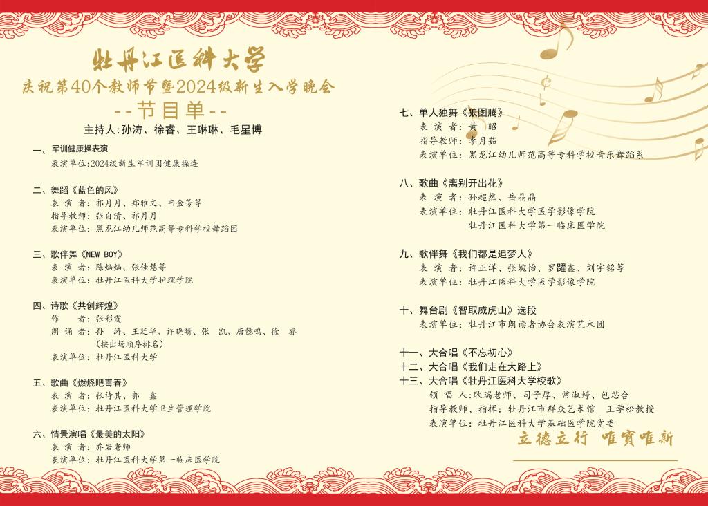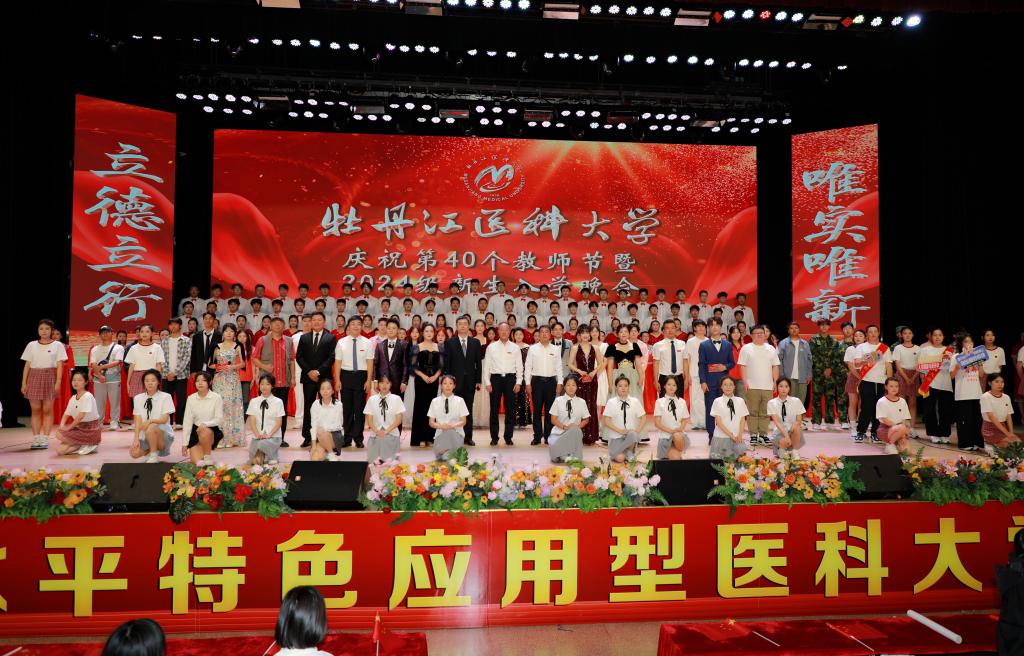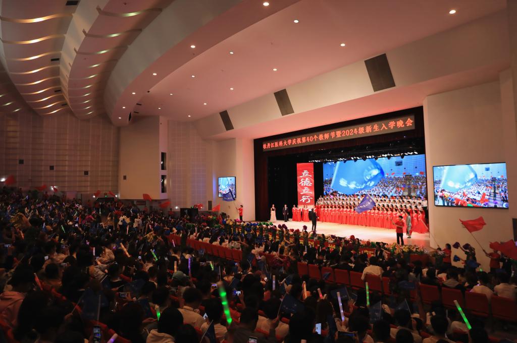 2024年9月6日,在第40个教师节来临之际,恰逢学校更名大学获得成功,牡丹江医科大学首届发展论坛顺利召开的美好时刻,牡丹江医科大学庆祝第40个教师节暨2024级新生入学晚会在文体馆演播大厅举行。