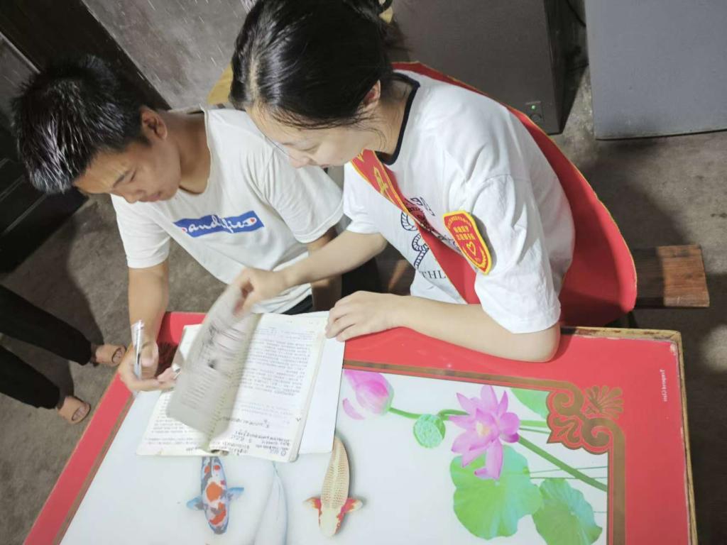 在云南省大理白族自治州永平县厂街乡岩北村,志愿者为孩子们辅导暑假作业,以“祖国旗帜在我心”为主题开设红色课堂,用通俗易懂的话语,让孩子们深刻了解国家重要旗帜背后所蕴含的深刻历史背景和它们所代表的深远意义。