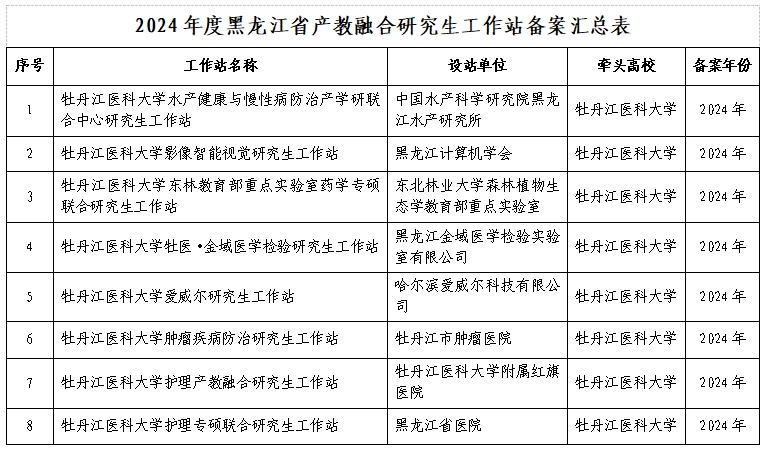 根据省教育厅《关于备案2024年度黑龙江省产教融合研究生工作站的通知》,公布2024年度黑龙江省产教融合研究生工作站备案名单,我校有8个研究生工作站获批备案,目前为止,我校已有11个研究生工作站获批黑龙江省产教融合研究生工作站备案。
