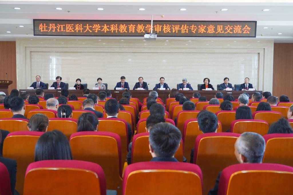 黑龙江省教育厅总督学刘兆国在讲话中表示,专家组反馈的相关意见既充分肯定了牡丹江医科大学近年来本科教育教学的特色亮点,又客观公正、实事求是地指出牡丹江医科大学本科教育教学工作存在的问题与不足,因地制宜地为学校开出了破解发展难题的实用良方。专家组不仅为学校进一步深化教育综合改革,提高人才培养质量指明了方向、提供了遵循,同时也为我省实施科教振兴计划、推动高等教育质量提升、建设教育强省贡献了智慧和良策。他对学校进一步做好评估整改工作提出了三点意见:一是坚定办学方向,提高人才培养质量。学校要坚持以习近平新时代中国特色社会主义思想为指导,全面落实全国教育大会精神,始终坚守为党育人、为国育才的初心使命,继承和发扬牡医精神,培养适应区域经济社会发展和医疗卫生事业发展需求的高素质应用型人才;二是彰显办学优势,服务龙江振兴发展。学校要找准“强国建设,龙江何为”“强省建设,教育何为”的时代方位,把握国家一体推进教育发展、科技创新、人才培养的新需求,发挥我省东南部地区医药研究和对俄区域优势,依托首批特色应用型本科示范高校的建设基础,以加快推进新医科建设为引领,全面推进高等医学教育创新发展;三是压实工作责任,持续推动评估整改。学校要牢记以评促建、以评促改、以评促管、以评促强的方针,要持续发挥评估的“指挥棒”作用,对专家提出的问题和建议,诚恳接受、照单全收。以最坚决的态度、最有力的举措,及时制定切实可行的整改方案,建立整改任务清单和责任清单,明确整改目标、责任领导、责任单位,确保整改落地见效。