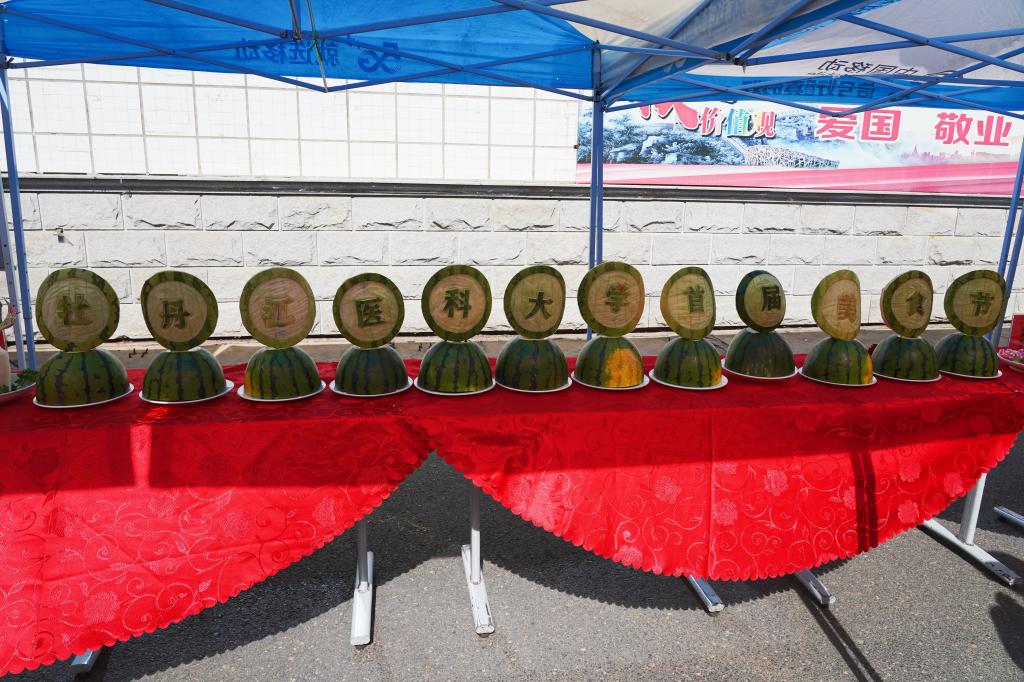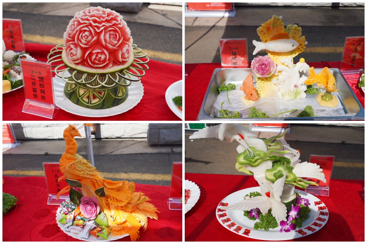 本届美食节涵盖一系列活动内容,除了发放节日酸奶、主题雕刻作品展示、厨艺展示等常规活动之外,还新增 “趣味活动”“夜卖场”等项目,把学生喜欢的各类特色美食“搬”进校园,让大家一起品评“牡医味道”。