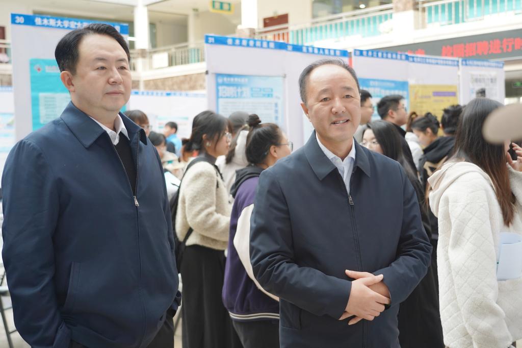 学校党委高度重视毕业生就业工作,党委书记马宏坤、党委副书记弓箭亲临招聘会现场,检查指导工作。在“龙江招聘专区”,马宏坤与用人单位代表亲切交谈,询问医院招聘岗位设置、薪资待遇、毕业生投递简历情况,并向用人单位代表介绍学校不断深化二为办学特色,持续提升人才培养质量,鼓励更多优秀毕业生选择龙江、扎根龙江、服务龙江,全力助推龙江医疗卫生事业高质量发展。在“外省招聘专区”,马宏坤与南宁市卫健委招聘人员沟通交流,对南宁市卫健委组团入校开展校园招聘表示欢迎和感谢,希望通过此次招聘会,能够促进牡医大与南宁市卫健委进一步交流与合作,实现互利共赢的目标。用人单位代表感谢学校搭建供需招聘的平台,对牡医大多年来培养的毕业生,在单位表现出“上手快、专业强、肯吃苦”的高素质表示充分的肯定。
