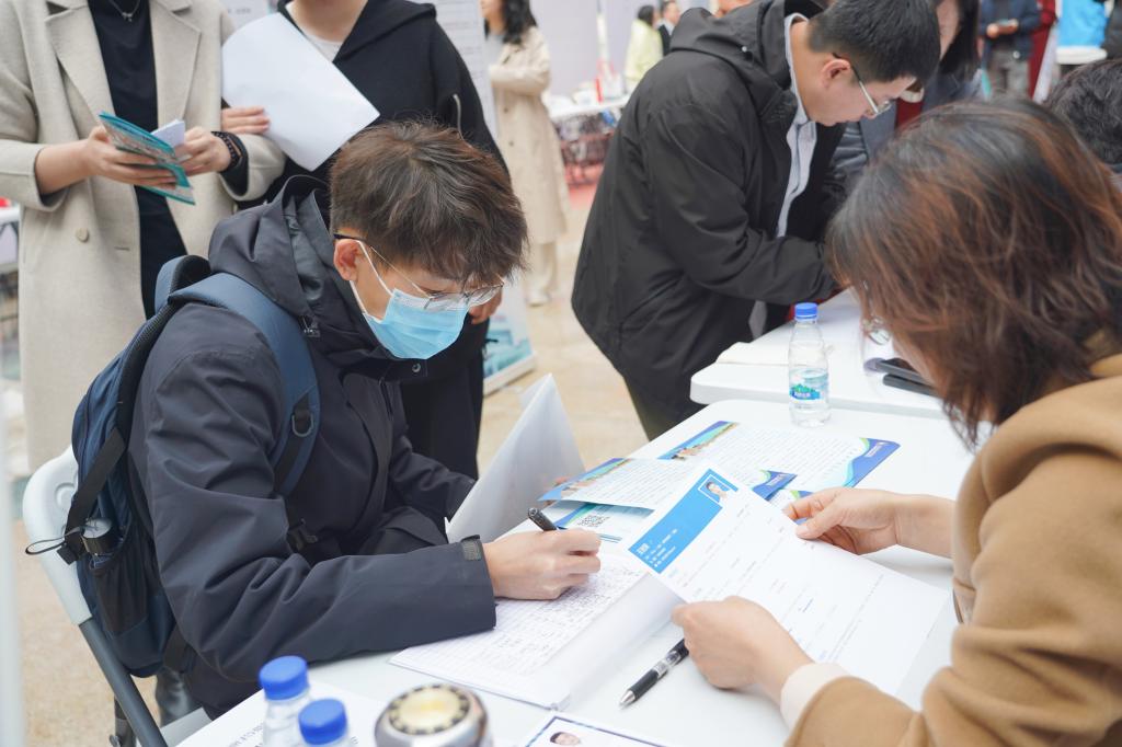 本场秋季校园招聘会呈现的最大特点是组团式入校招聘,来自上海市奉贤区、南宁市、江山市、武义县等多地市医疗单位组团式来校招聘;沈阳联勤保障中心等10余家单位同步进行线下专场宣讲、面试、笔试招聘,此种方式深受参会毕业生喜爱与肯定。