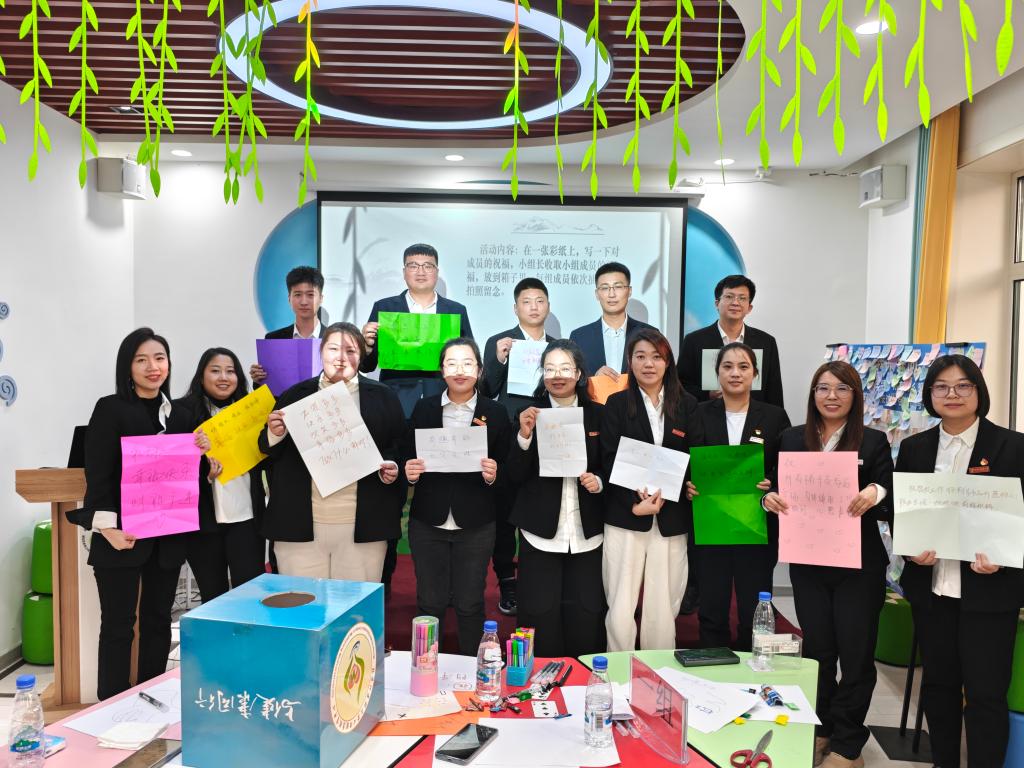 本次辅导员团体心理辅导以“体验式教学、小组分类谈论”模式进行开展,融趣味性、丰富性于一体。在心理教师带领下,辅导员们参加了“你比我猜”“镜中自我”“我的漂流信”“我的校园接力画图赛”等心理团建活动,鼓励引导辅导员放松身心,挖掘并积极关注自身资源和能量,与内在自我联结,为身心赋能。辅导员老师们都积极参与其中,现场气氛热烈,欢笑不断。辅导员们还相互“真情告白”,写下对学工团队成员的祝福,表达个人的内心感受和真实情感,促进了彼此之间的友好交流,活动在轻松愉快的氛围中圆满结束。活动后,辅导员们纷纷表示,本次团体心理辅导活动,不仅帮助大家深入认识自我、探索自我,也启发了大家开展学生心理健康工作的思路,将学以致用,通过团体心理辅导方式帮助学生获得积极的情绪、积极的认知和积极的自我。