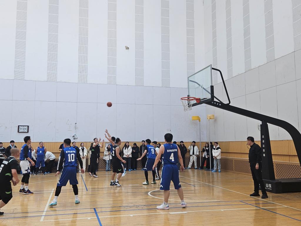 此次比赛于篮球馆精彩上演,来自校部及两所附属医院的共11支队伍,近110名教职工参赛。比赛每天中午12点30分在篮球场鸣哨开赛,依据报名球队数量划分为A组、B组。