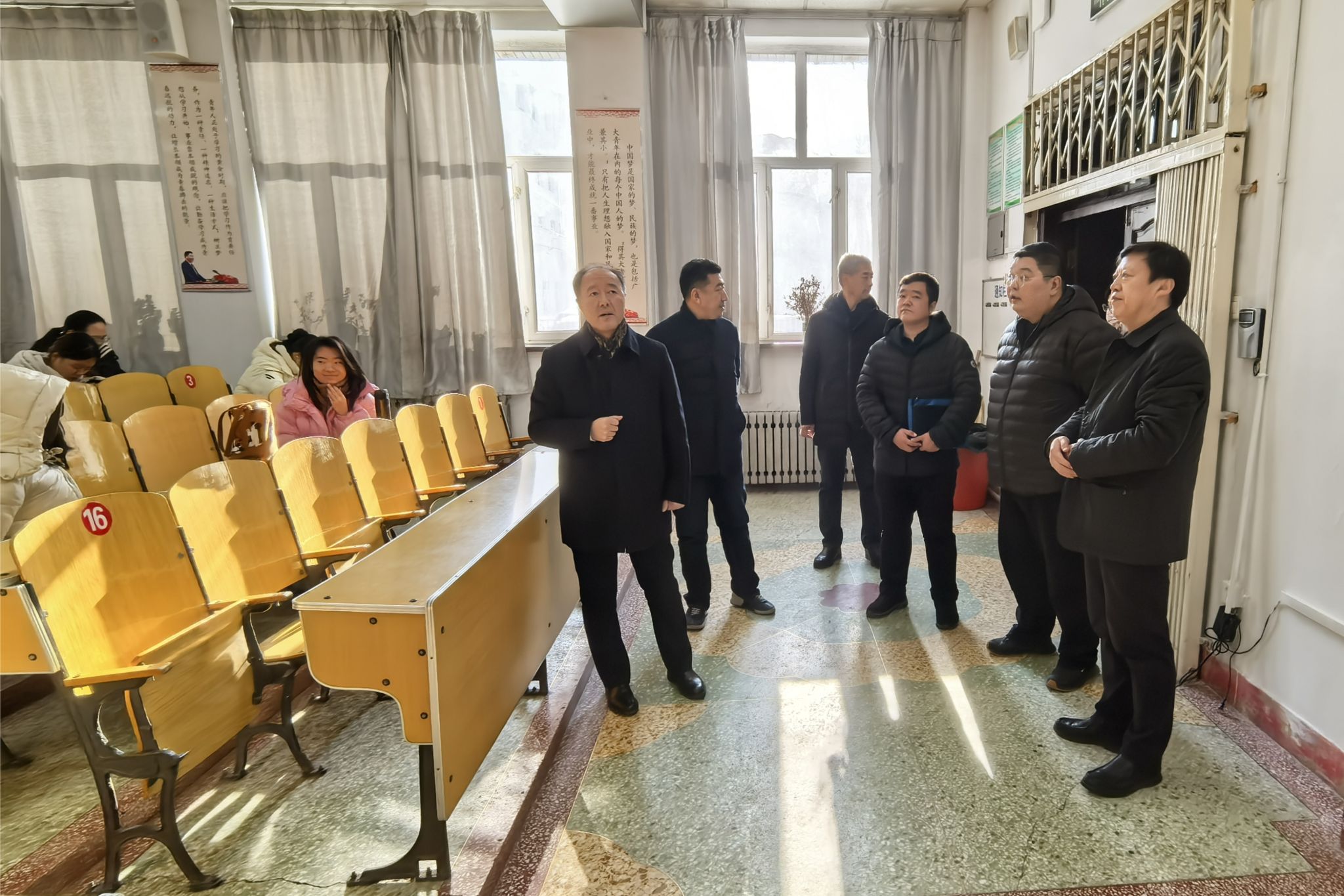 为深入贯彻落实上级关于安全生产各项工作部署,扎实推进“护航亚冬”安全生产百日攻坚及安全隐患排查整治行动,确保期末及两次国家考试期间的校园安全稳定,11日上午,学校党委书记马宏坤、纪委书记黄海涛带队,对图书馆、体育馆、文体馆演播大厅、大学生创业园等场所开展了安全检查,到基础教学楼阶梯教室等国考场所,指导考前准备工作。学校办公室、教务处、保卫处、研究生处、现代教育技术中心相关负责人陪同检查,图书馆、体育教研部、团委负责同志现场汇报了相关场馆的安全管理情况。