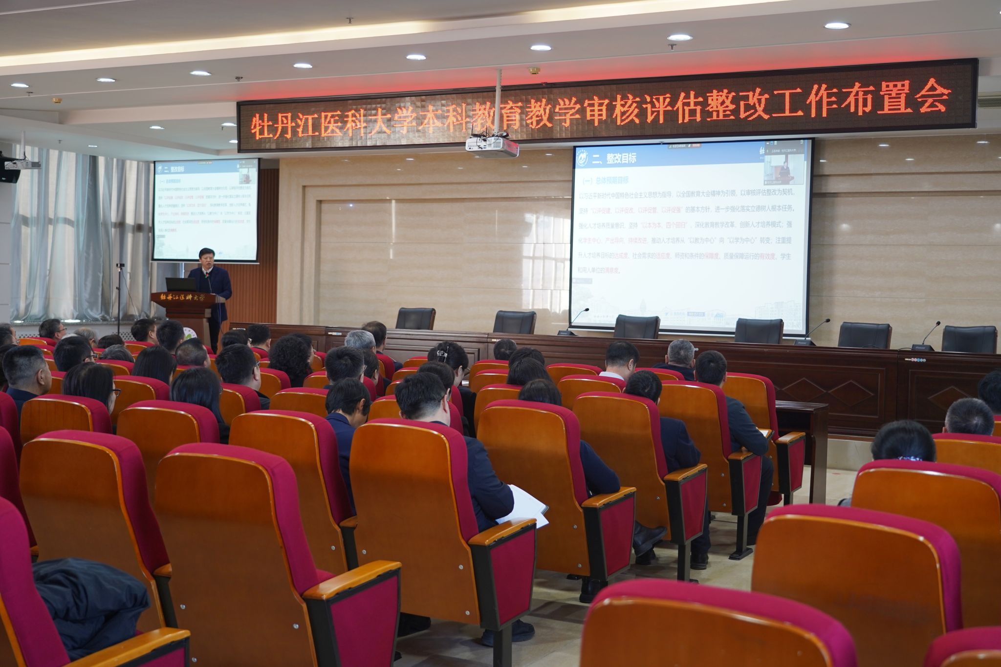 12月18日下午,牡丹江医科大学本科教育教学审核评估整改工作布置会在临床技能实训中心17楼会议室举行。学校在校全体领导班子成员线下出席会议,学校副处级以上干部线下参加会议;各教学部门教研室主任、副主任,教学秘书,辅导员和各职能部门工作人员通过腾讯会议线上参加会议。会议由学校副校长朱晓冬主持。