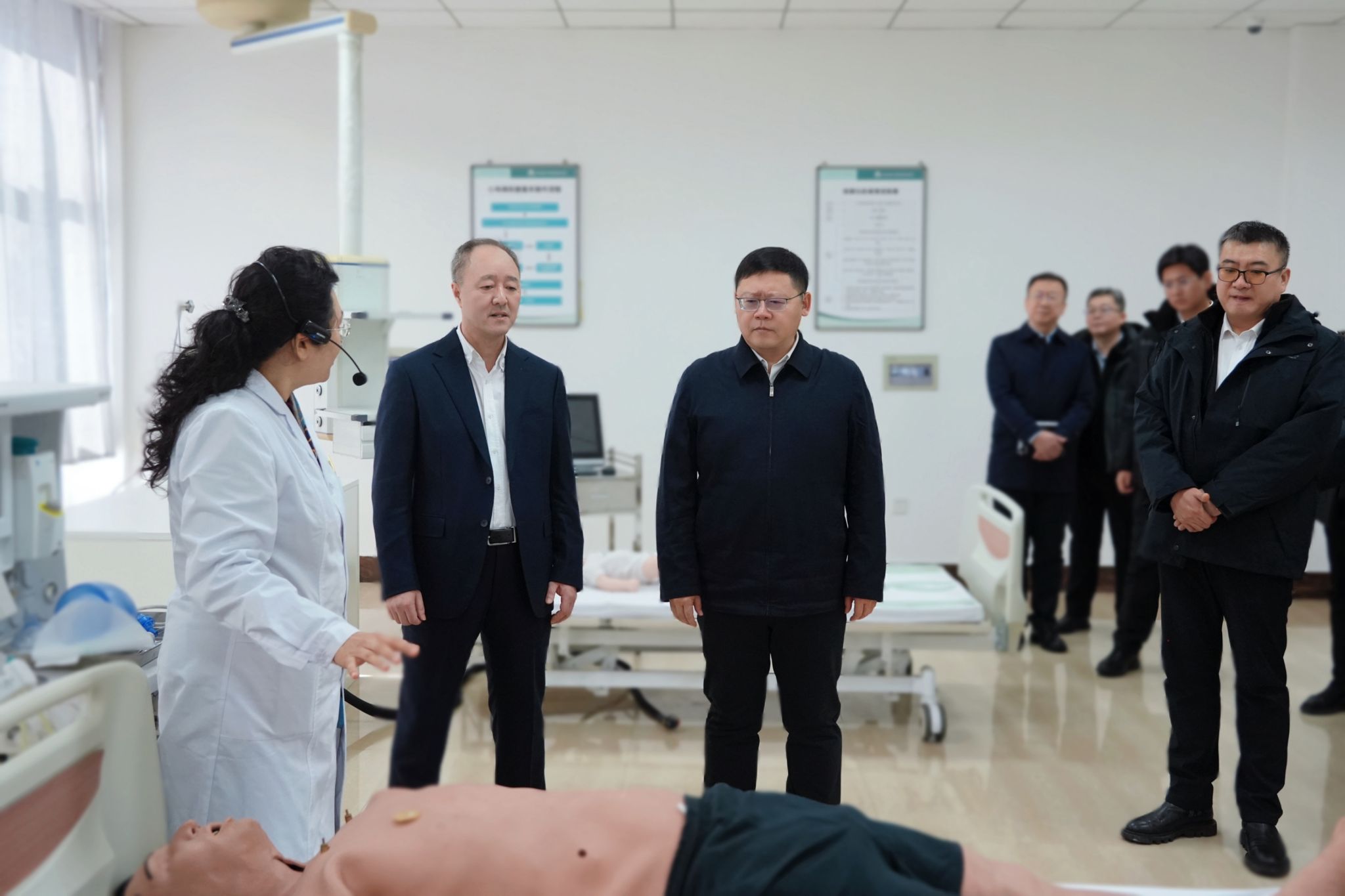 在党委书记马宏坤、党委副书记张德才、副校长胡文华陪同下,杨勇实地参观医学影像学院实习实践基地、PACS实验室、超声检查实验室、公共卫生实训中心项目现场、临床技能实训中心,听取情况介绍,详细了解教育教学成果、人才培养、重点项目建设、教学设施配备等情况,对学校多年来在学科建设、人才培养和服务地方发展等领域取得的成绩给予充分肯定。