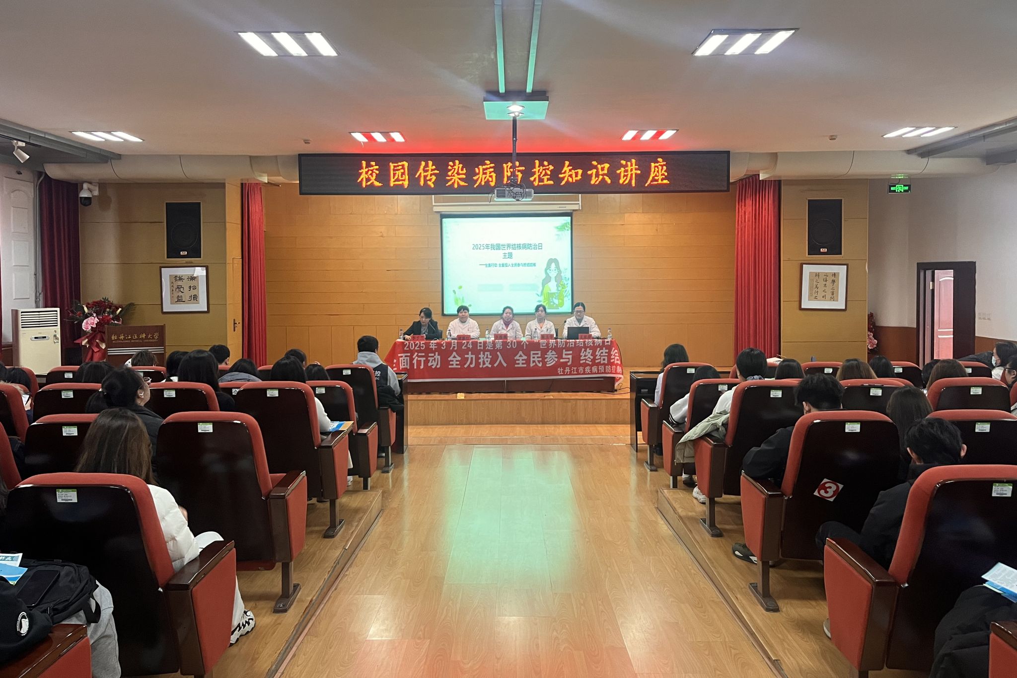 活动在学校图书馆多功能厅举行,由医务处副处长李子兰主持。康安医院呼吸内科王亚萍主任针对结核病常见症状、传播途径、造成的危害以及校园内如何预防进行了详细的讲解;综合肝病一科崔玉华主任讲解了校园常见传染病-水痘的预防控制知识,提醒学生由于其春季高发、传播力强,尤其在校园人员密集的环境中,必须引起重视,同时建议学生们及时接种疫苗,强化免疫屏障;体检科副主任李薇薇结合国家持续推进的“体重管理年”行动,生动讲解了青年学生从饮食、运动、行为习惯三方面科学减重的方法,提醒学生避开极端减肥误区,合理营养,强健体魄。