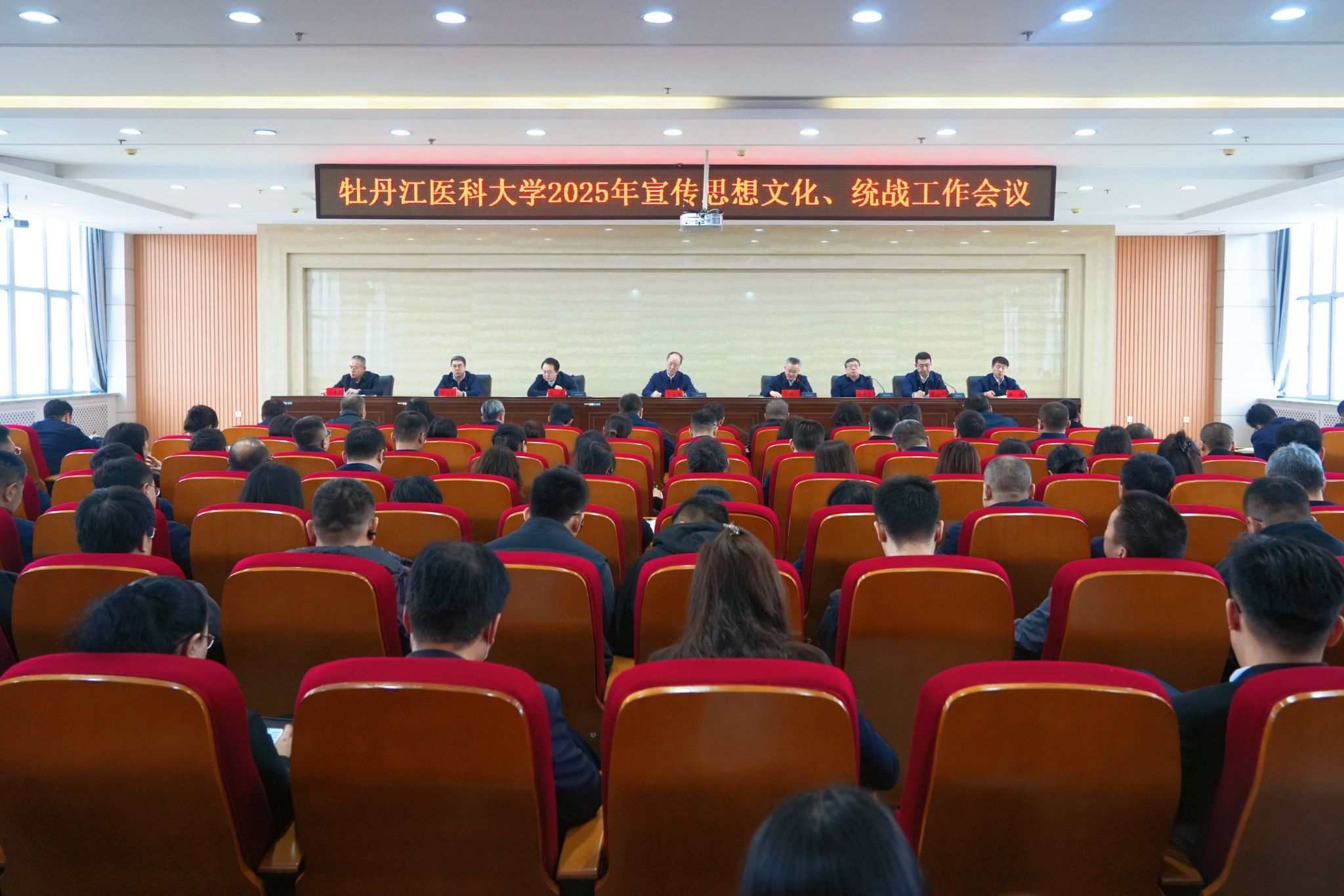 为进一步统一思想,提高认识,明确责任和工作任务,为建设高水平特色应用型医科大学提供坚强保障,2025年3月26日,学校在临床技能实训中心17楼大会议室召开2025年党建、宣传思想文化和统战、安全稳定、全面从严治党工作会议,总结2024年四项工作开展情况,安排部署2025年相关工作任务。学校领导班子成员出席会议,副处级以上干部、全体辅导员及组织部、宣传统战部、纪委办公室、保卫处全体人员参加会议。会议由副校长朱晓冬主持。