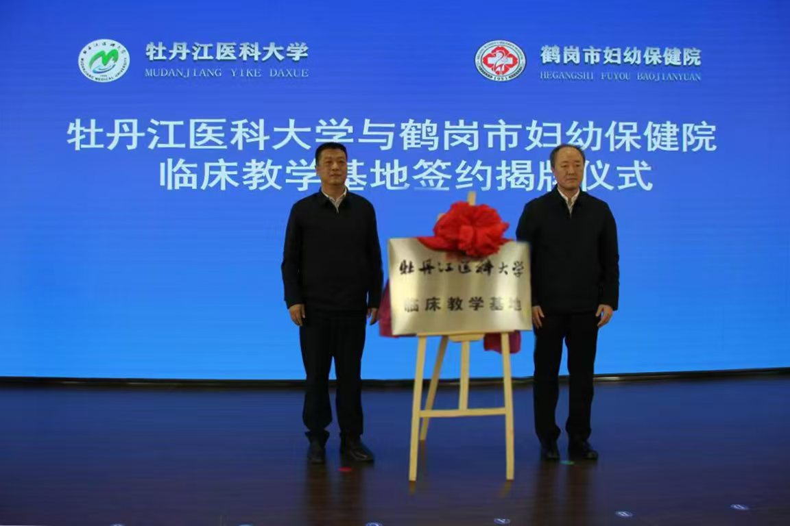 本次签约揭牌仪式由鹤岗市卫生健康委党委书记、主任宫志虎主持,学校党委书记马宏坤、鹤岗市妇幼保健院党委书记隋友志分别进行了致辞,牡丹江医科大学教务处处长宋高臣、鹤岗市妇幼保健院党委书记隋友志现场签约,鹤岗市委常委、副市长齐东亮,牡丹江医科大学党委书记马宏坤为临床教学基地揭牌。