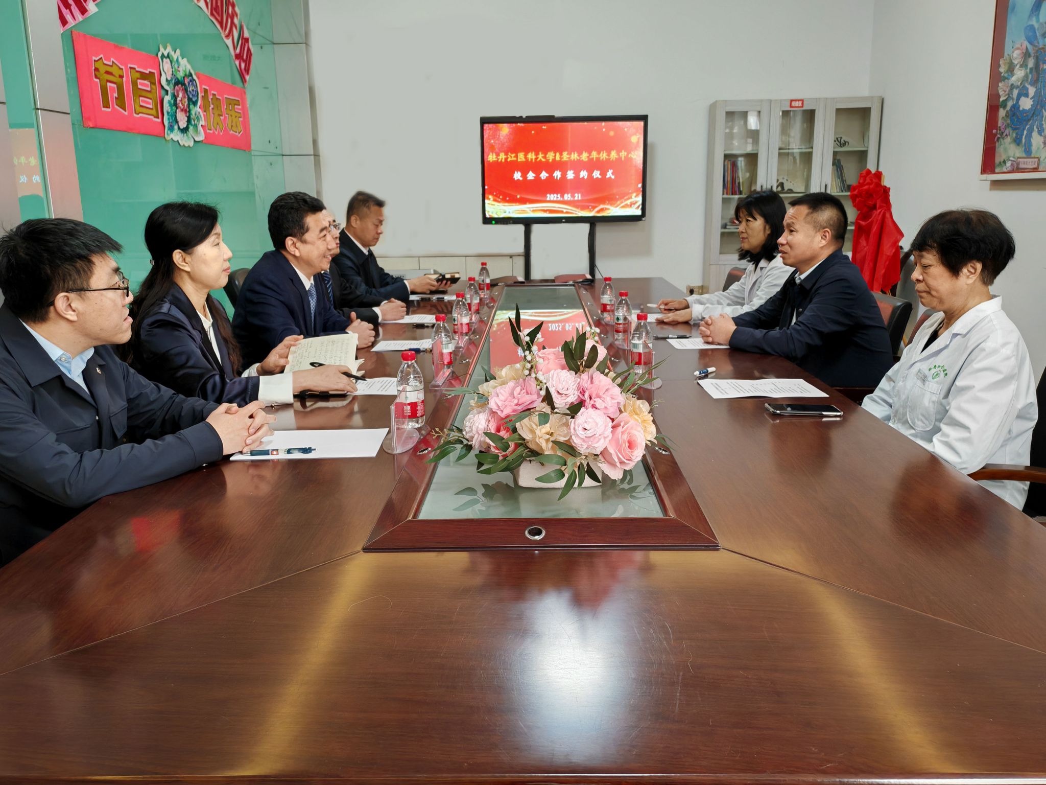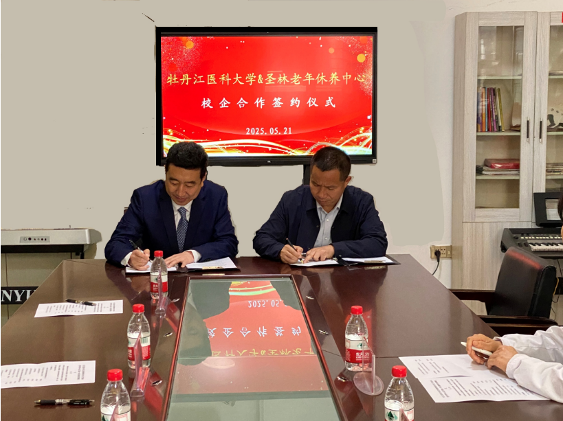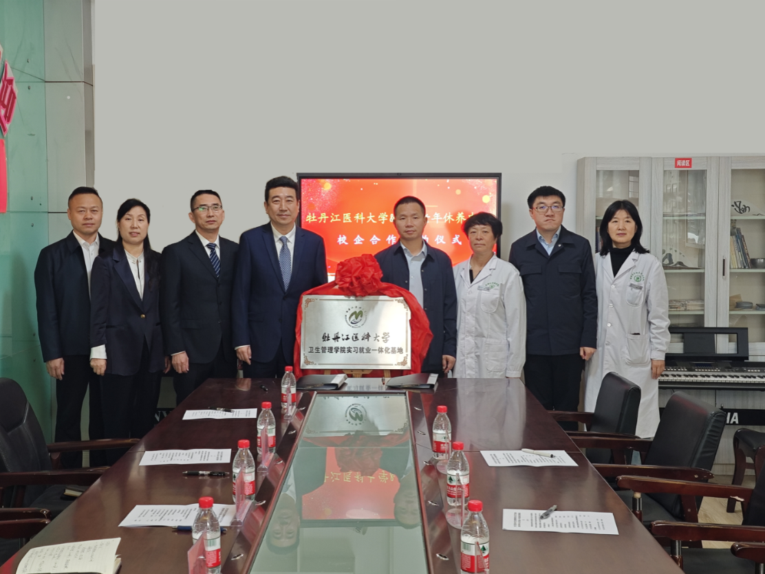 为推动2025届毕业生高质量就业,助力地方经济发展,充分发挥学校与企业双方优势,更好地为社会、为企业培养高素质、高技能的应用型人才,同时也为学生实习、就业提供更多空间,在双方共同努力下,5月21日上午9:00,在牡丹江市圣林老年休养中心举办实习就业一体化基地签约暨授牌仪式。牡丹江医科大学纪委书记黄海涛,卫生管理学院党委书记范秀坤、院长师东菊、副处级辅导员张久涛、实习就业科科长刘磊,牡丹江市圣林老年休养中心总经理邓火林、院长许宝霞、副院长亓莲出席本次会议。