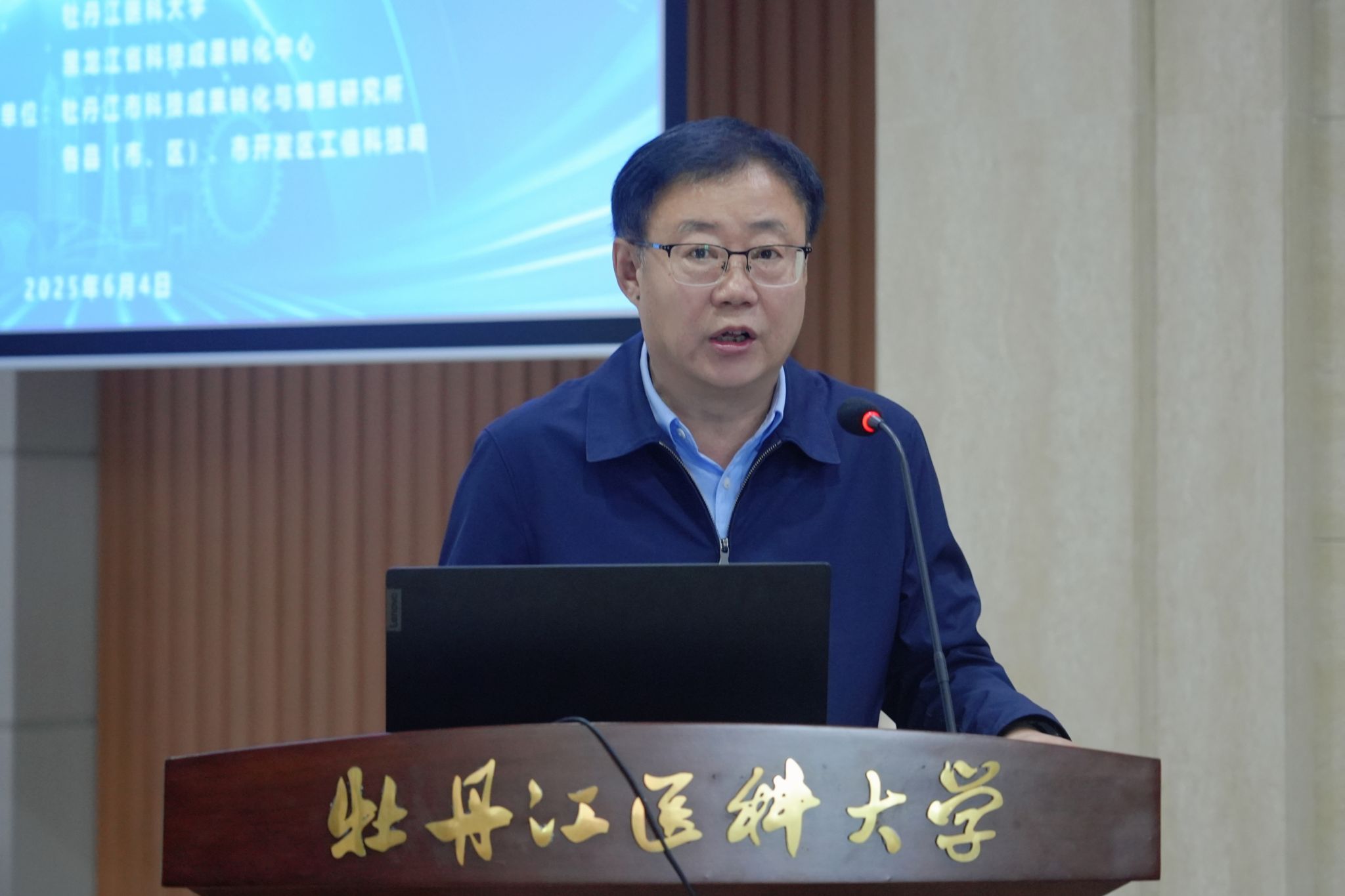为深入贯彻落实党的二十届三中全会精神,响应全省“科技成果产业化突破年”的号召,6月4日,由黑龙江省科学技术厅指导,牡丹江医科大学、牡丹江市科学技术局和黑龙江省科技成果转化中心联合承办的“黑龙江省2025年科技成果转化月系列活动——牡丹江市技术转移人才培训班”暨高校“三进三促”专项行动牡丹江医科大学专场活动在我校隆重开幕。会议邀请黑龙江省科技成果转化中心主任常国辉等专家做培训。学校党委书记马宏坤、校长李春江、副校长胡文华出席会议。全市高校、科研院所、县(市、区)及开发区科技管理部门、省级科技项目承担企业等单位相关人员130人参加会议。会议由牡丹江市科技局副局长艾龙江主持。