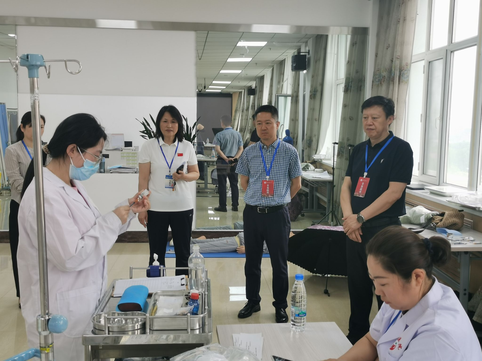 本次技能考试内容严格对标执业资格考试大纲及相关专业毕业要求,采用“教学模型+标准化病人”的复合评估模式,其中临床医学专业类考试共设置10个考站,涵盖病史采集、体格检查、操作技能等核心临床能力项目;医学影像学专业设置技能操作、报告书写等4个考站;护理学专业以病例为基础采取入院到出院全过程护理技能操作考核等。通过多站式、标准化考核机制,既系统检验了学生对“三基”内容的掌握程度,又重点考察了临床思维、医学人文、健康教育等综合素质。