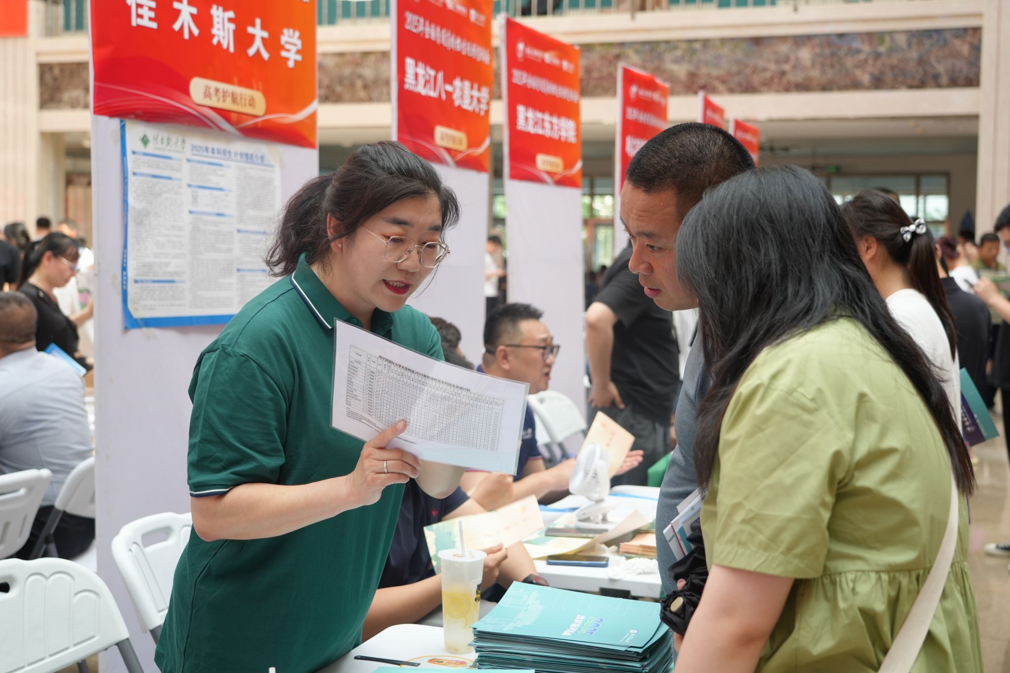 6月25日,黑龙江省2025年普通高校招生现场咨询会暨校园开放日活动在学校图书馆隆重举行。本次活动汇聚了全国近百所高校参展,现场咨询量突破1300人次,为龙江学子搭建了权威、专业的高招咨询平台。
