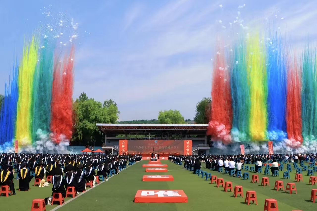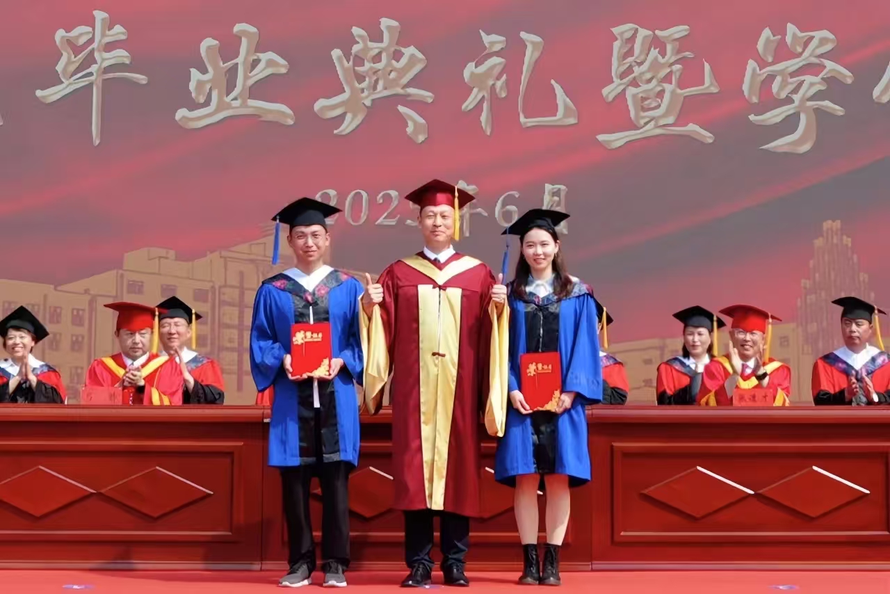 激动人心的学位授予仪式上,庄重的氛围中更添一份传承的温度。硕士研究生毕业生代表的“束脩礼”环节,感念师恩深重;随后,各专业毕业生代表有序登台,校领导为毕业生代表逐一拨穗正冠、颁发学位证书,流苏从右至左轻轻拨过的瞬间,象征着学有所成的荣耀,更承载着破茧成蝶的蜕变。为让每位学子感受这一神圣时刻,校领导与学位委员会全体成员移步运动场,为全体毕业生行拨穗礼,金色的穗丝如麦浪翻涌,青春的面庞在阳光下熠熠生辉,构成这个夏日最动人的画卷。