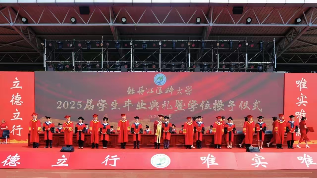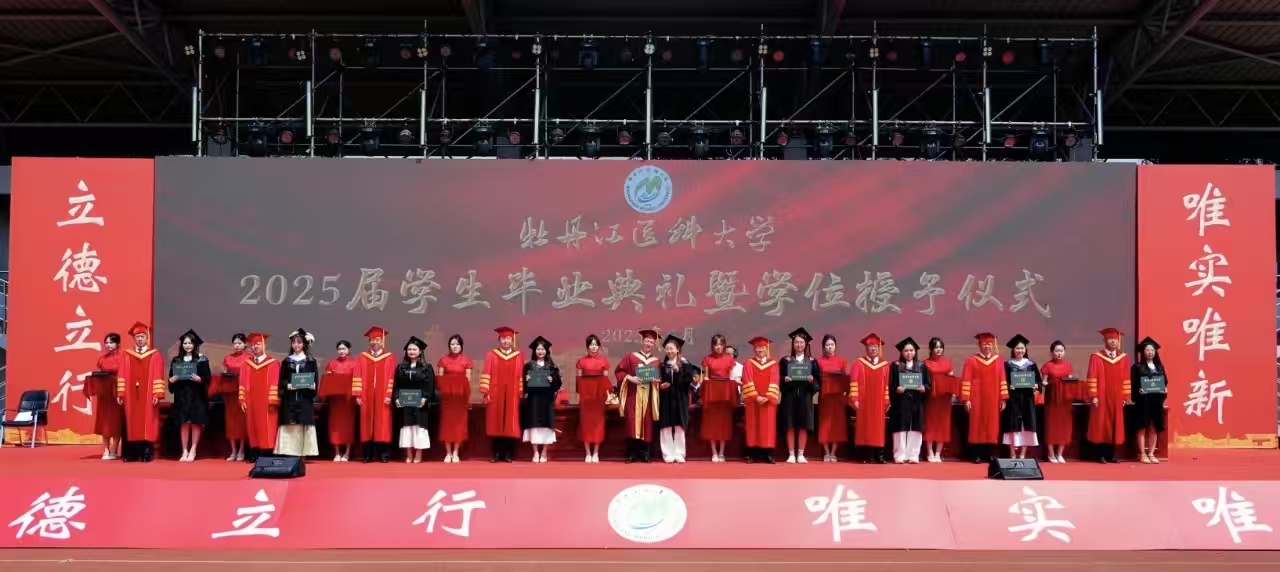 六月的阳光洒满校园,青春的气息与离别的眷恋交织升腾。6月27日上午8时30分,牡丹江医科大学2025届学生毕业典礼暨学位授予仪式在庄严而热烈的氛围中隆重举行。学校领导班子成员,学位评定委员会委员,硕士毕业生导师,各学院领导班子成员、毕业生辅导员齐聚现场,与校友会微信视频号云端观礼的万千师生家长一道,线上线下同步聚焦,共同见证1946名毕业生圆满完成学业的重要时刻,目送他们开启人生的崭新篇章。