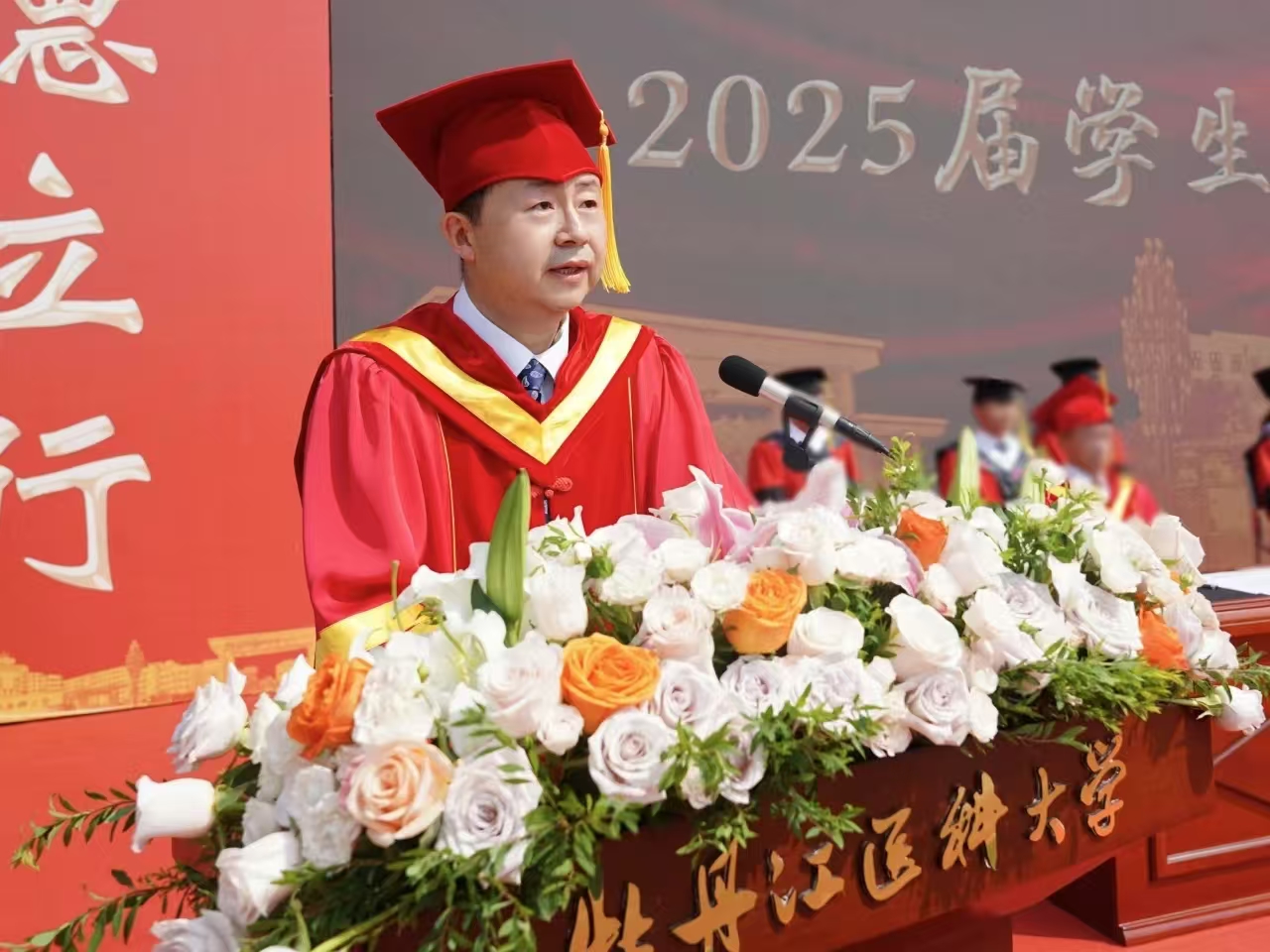 李春江希望2025届毕业生们能顶天也能立地,在平凡的坚守中淬炼伟大,于艰辛的攀登中闪耀光芒;愿拥有一往无前的锐气和重振旗鼓的底气,怀揣打破陈规的胆识和百折不挠的韧劲;愿灵魂永远生动有趣,永不成为自己曾厌弃的模样;愿心性始终澄澈明朗,纵使历尽千帆,归来仍是少年!