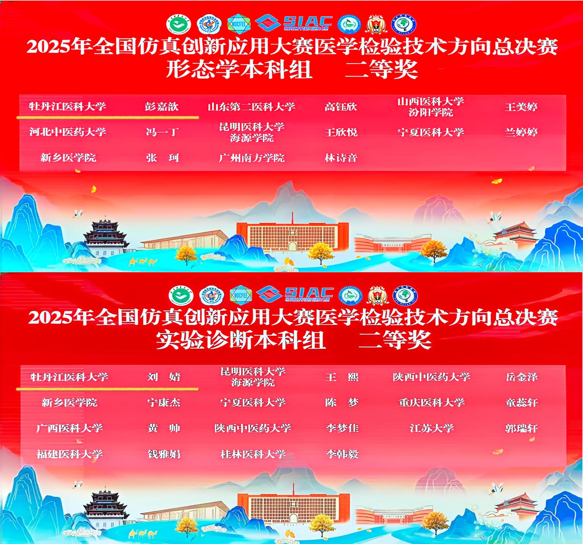 7月17-20日,我校学生在2025年全国仿真创新应用大赛医学检验技术方向总决赛取得佳绩,获形态学本科组大赛、实验诊断本科组二等奖2项。