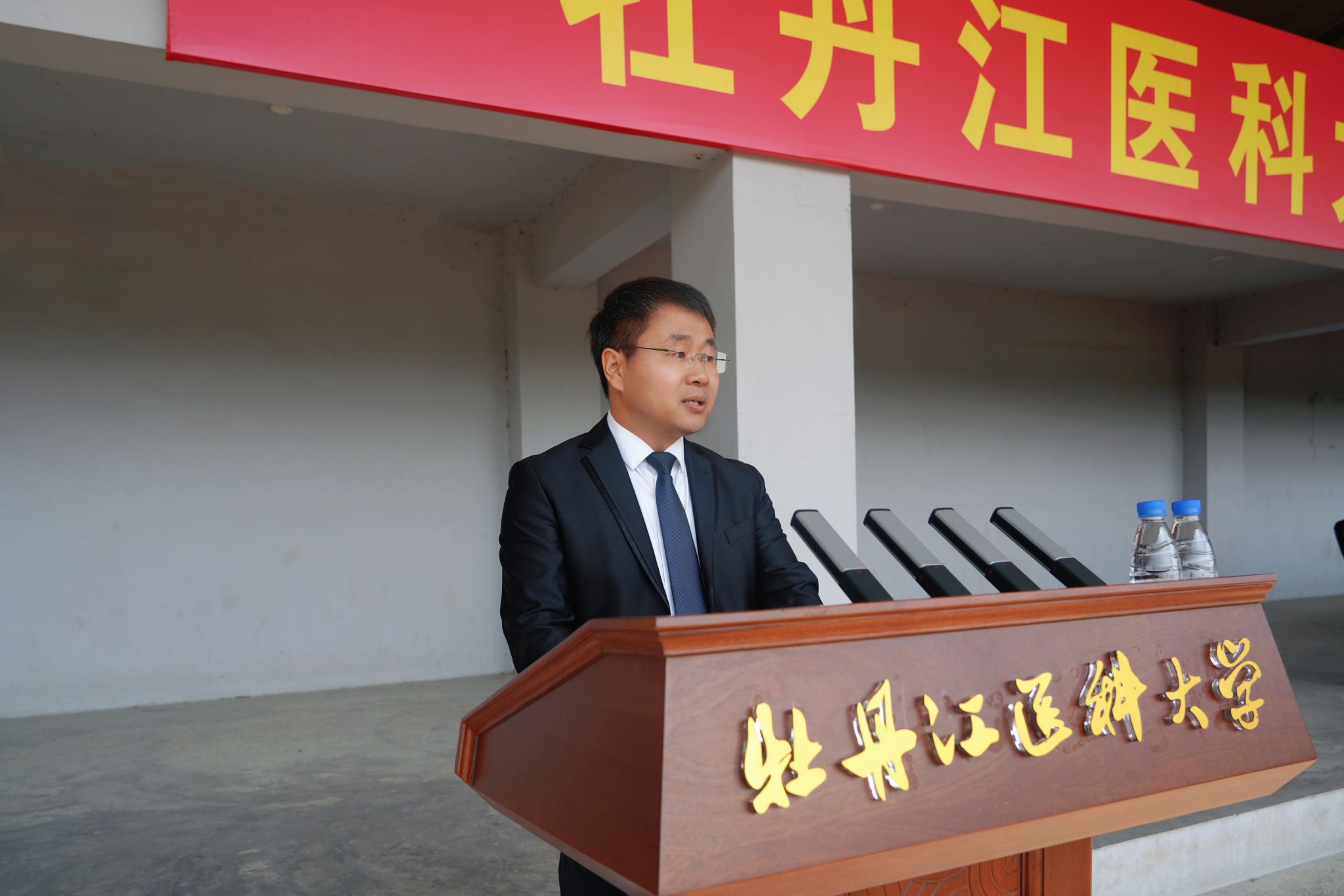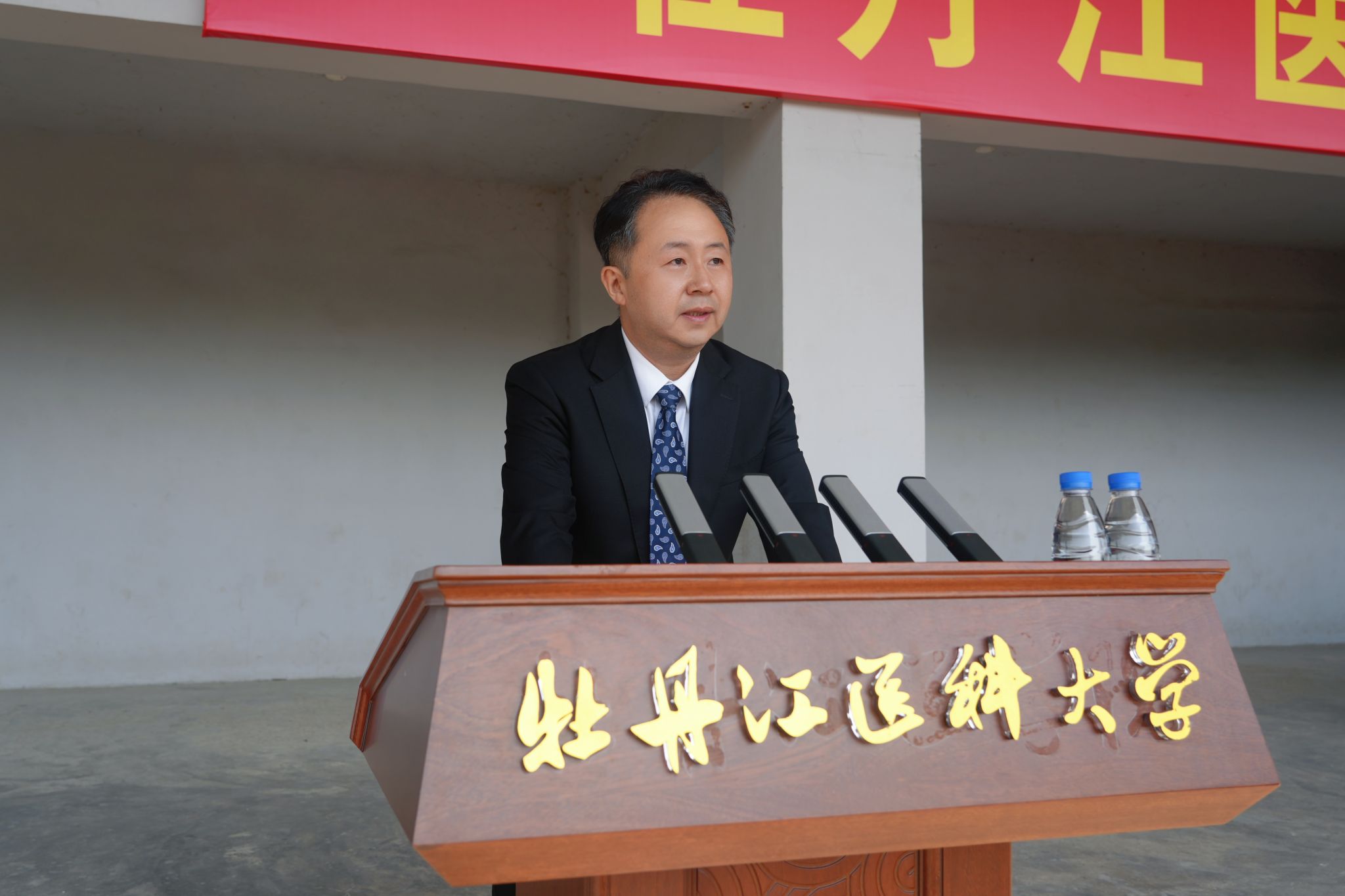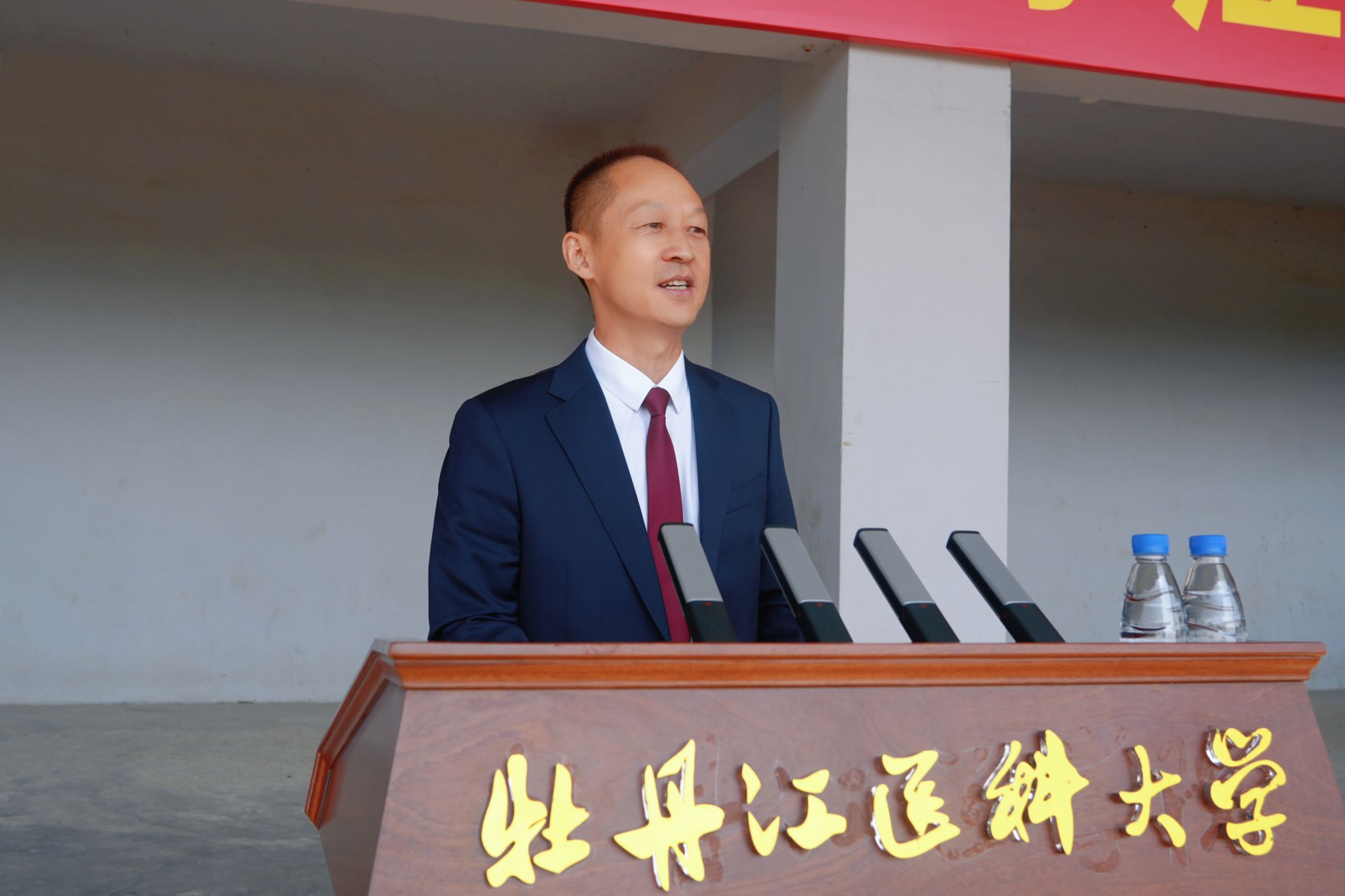 公共卫生学院院长荣胜忠教授代表教师发言。他深情回顾自己在牡医求学与任教的经历,他勉励新生坚定人生选择,并鼓励学生心怀热爱、不畏迷茫,同时要珍惜大学时光,坚守学医初心、永葆奋斗热情,以热爱照亮前路,医学之路虽远,行则将至,只要脚踏实地、持之以恒,终能抵达星辰大海。