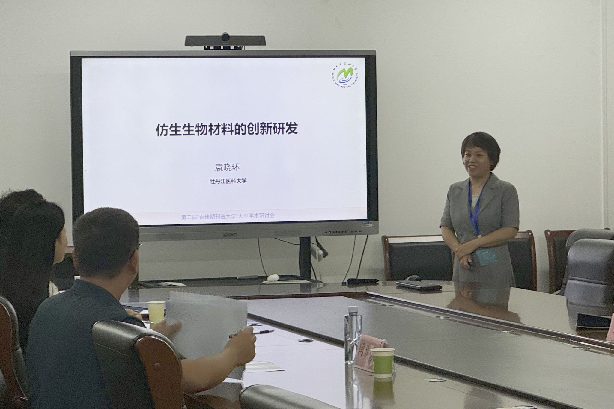 袁晓环应主办方要求在学术研讨会生命科学学院分会场作了题为《仿生生物材料的创新研发》的报告,并介绍了牡丹江医科大学生命科学学院学科发展历程。围绕糖尿病及其并发症的发病机制及生物治疗方面的研究,从《仿生生物材料在糖尿病难愈合创面中的应用研究》和《抗纤维化基因工程药物的开发及应用研究》两个方面,凝练发表在Adv Healthc Mater, 2023;Materials & Design, 2023;Chemical Engineering Journal, 2024;Materials Today Bio, 2025;Biomater Res, 2023等8篇SCI文章核心内容,提出核心思想:“源自天然的仿生化和超越自然的智能化”,以及通过“3R策略”治疗糖尿病创面。与会师生针对报告内容展开热烈讨论,交流学科和专业建设经验。