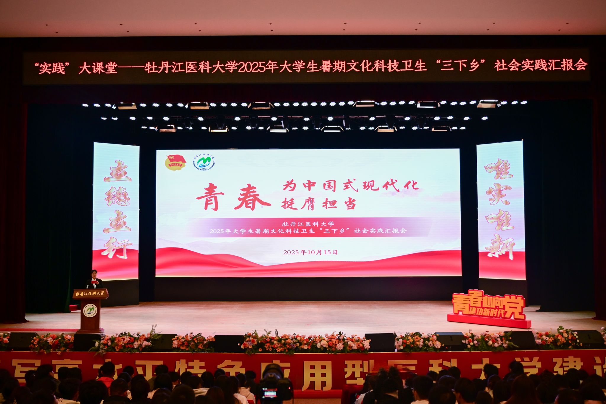 暑期乡野的实践余热未散,青春担当的故事仍在回响。10月15日下午,牡丹江医科大学2025年暑期“三下乡”社会实践汇报会在学校文体馆正式拉开帷幕。汇报会现场,学校党委副书记弓箭,学生工作部(处)、研究生处、团委相关负责人,各学院学生工作分管领导及数百名师生代表齐聚现场,共同回溯暑期实践历程、重温初心使命、分享成长收获,为后续深化实践育人工作凝聚共识。