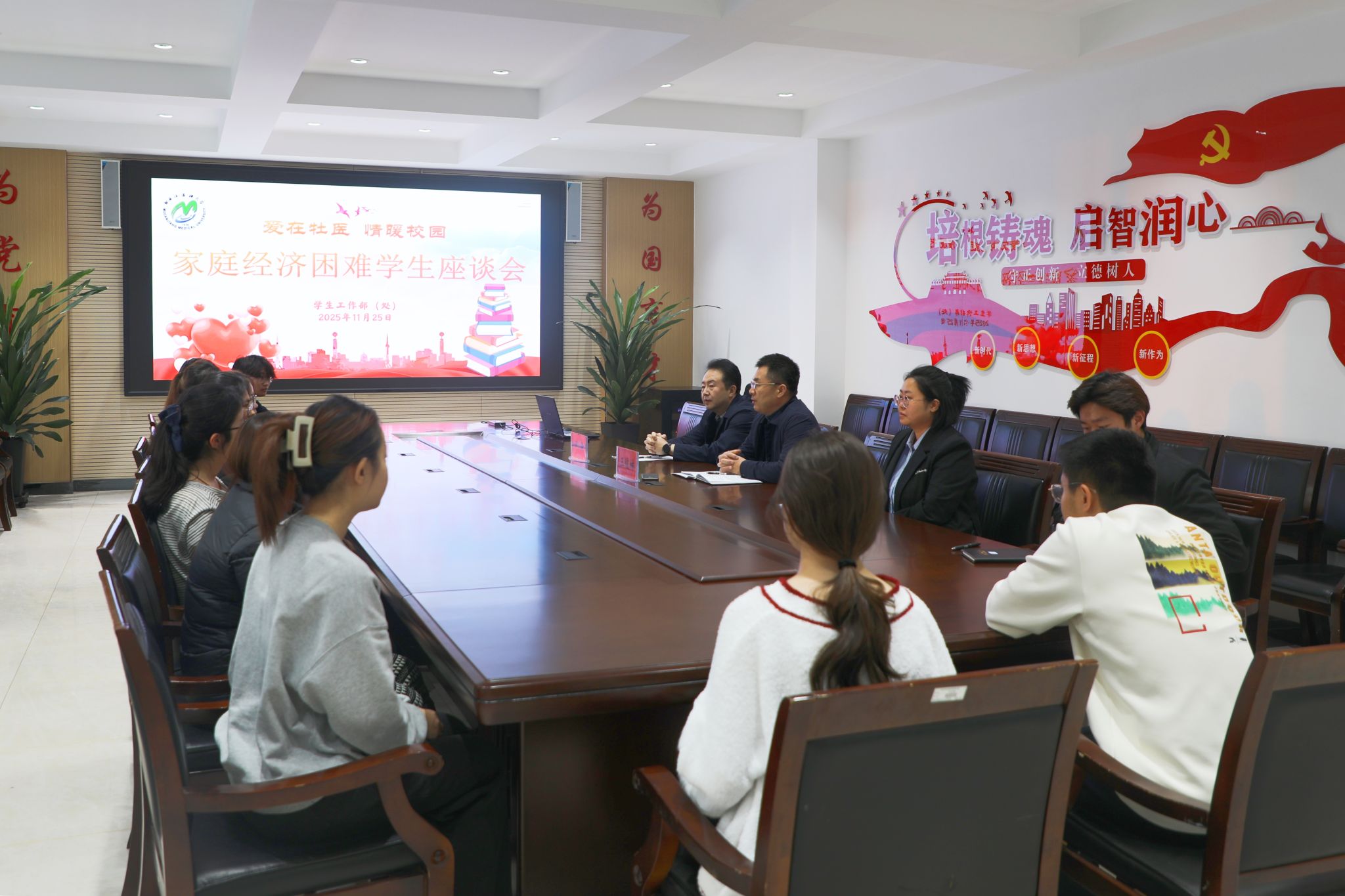 为深入落实“围绕学生、关照学生、服务学生”的育人理念,切实解决家庭经济困难学生实际需求,深化资助育人内涵,精准提升帮扶工作实效性,11月25日下午,我校召开2025年家庭经济困难学生座谈会。学校党委副书记弓箭、学生处资助科全体教师与10名2025级家庭经济困难学生代表参加本次座谈会,座谈会由学生工作部(处)部(处)长王俊林主持。