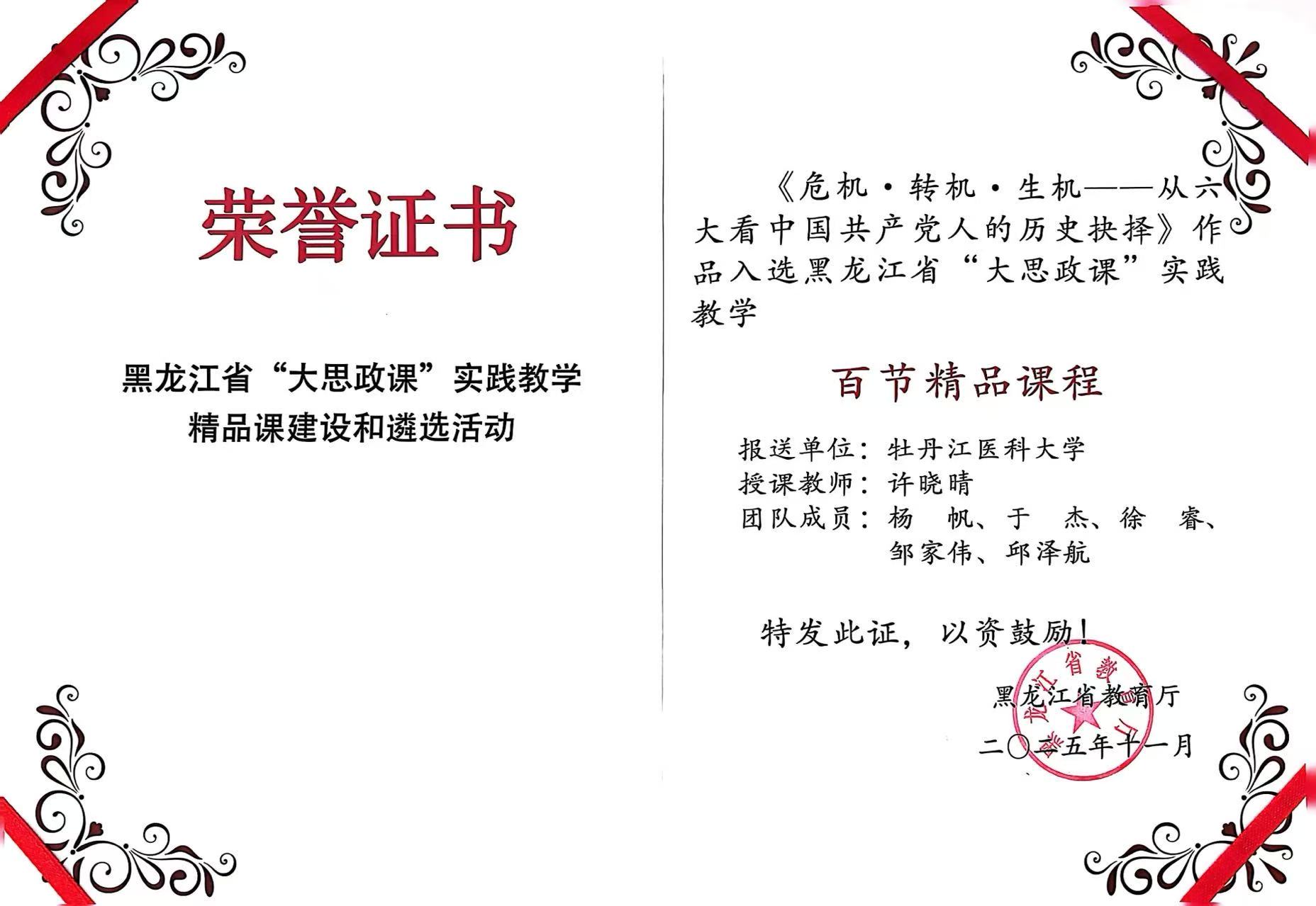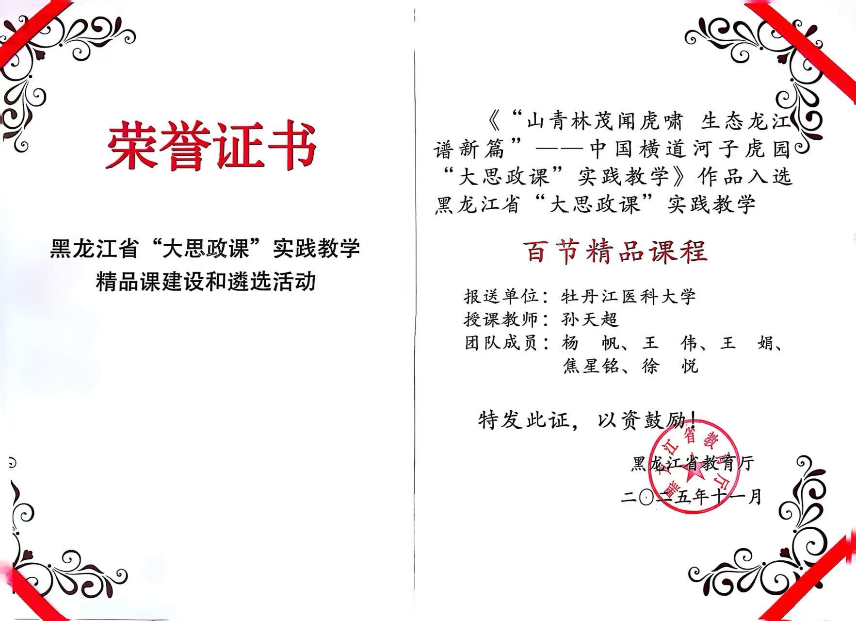 11月29日上午,黑龙江省“大思政课”实践教学精品课程展示会在东北农业大学召开,经过两个多月的层层遴选,我省“大思政课”实践教学“百节精品课程”名单在本次会议上揭晓,我校马克思主义学院报送的两个作品全部成功入选“百节精品课程”。它们分别是许晓晴老师主讲的《危机·转机·生机:从六大看中国共产党人的历史抉择》和孙天超老师主讲的《“山青林茂闻虎啸 生态龙江谱新篇”--中国横道河子虎园“大思政课”实践教学》,这既展现了我校思政课教师理论与实践相结合的扎实专业功底,也体现了我校在推动“大思政课”建设方面的显著成效。