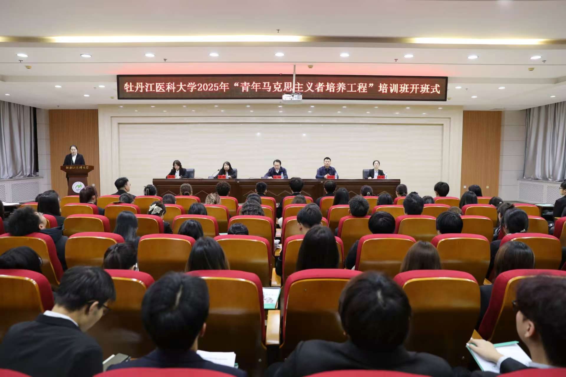 仪式现场,马克思主义学院院长杨帆宣读《牡丹江医科大学2025年“青年马克思主义者培养工程”实施方案》,为学员清晰勾勒成长路径,为培训工作筑牢制度基础。