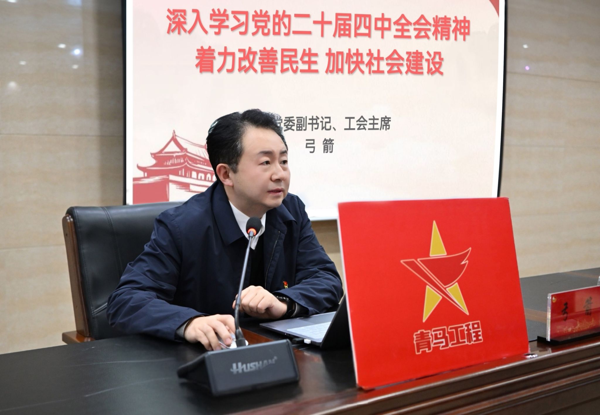 随后,弓箭以《深入学习党的二十届四中全会精神 着力改善民生 加快社会建设》为题,讲授本期“青马工程”第一课。他立足国情实际,围绕“加快推进我国社会建设的时代背景”“习近平总书记关于社会建设的理论阐述”“习近平总书记关于社会建设的实践要求”三个维度层层递进,结合医疗民生案例与医学领域实践场景组织互动研讨,重点解读党的二十届四中全会精神中“健全公共卫生应急体系”“优化医疗资源配置”等部署的核心要义,引导学员思考“医学青年如何回应群众健康需求”,为学员搭建理解新时代社会建设的理论框架,明晰新时代医学青年的责任担当与行动方向。