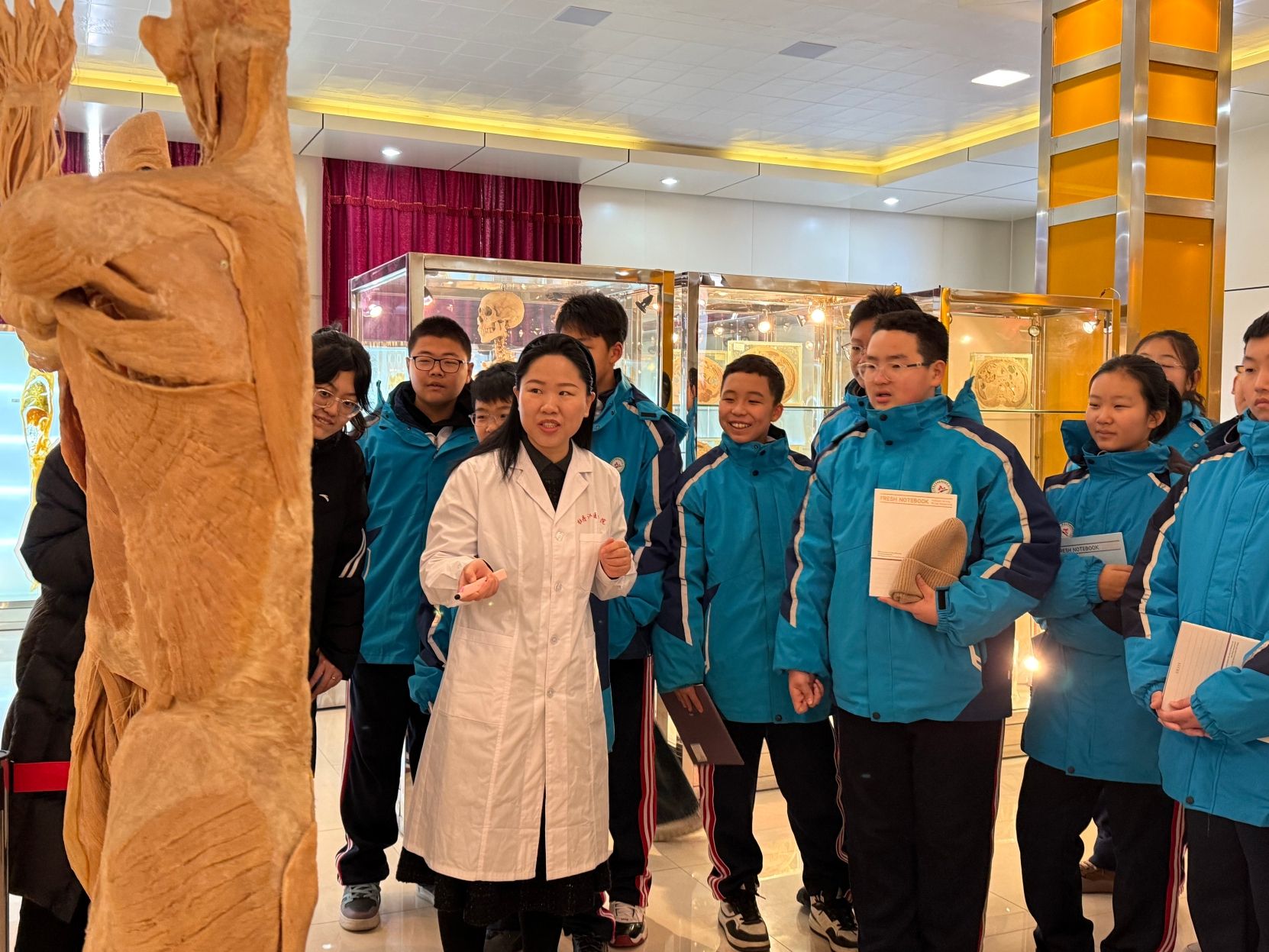 活动以“传承红色基因,深耕医学科普,厚植家国情怀”为主题,设置“医启童心”“医润红心”“医心向党”三大核心板块,构建起“实践体验—历史浸润—思想升华”的思政育人内容。在生命奥秘馆,学生们开展医学科普沉浸式体验,结合人体标本与互动模型,专业教师生动讲解人体结构、生命发育及健康生活知识,让医学知识走出课堂、走进童心;校史馆内,讲解员引导师生参观边疆医学教育展区、抗疫成果展与优秀校友事迹墙,生动展现学校在边疆医疗支援、基层卫生服务中的责任担当。
