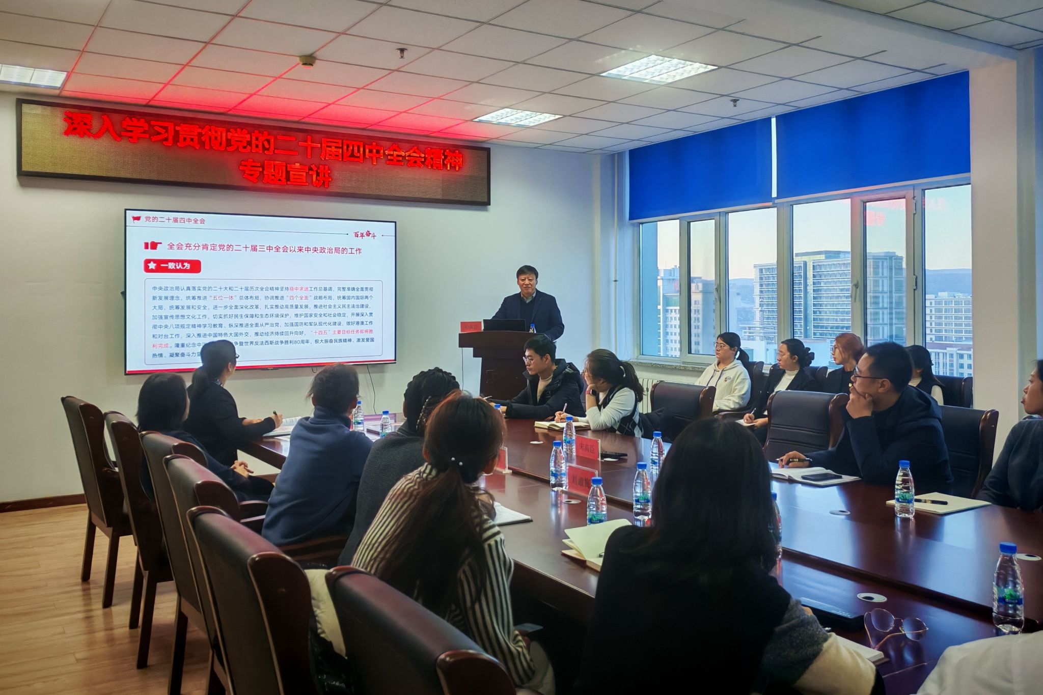 为深入学习贯彻党的二十届四中全会精神,引导广大党员干部和教职员工切实把思想和行动统一到党中央决策部署上来,2025年12月12日,副校长宋高臣到护理学院教工党支部和教务处党支部全体党员开展党的二十届四中全会精神专题宣讲。
